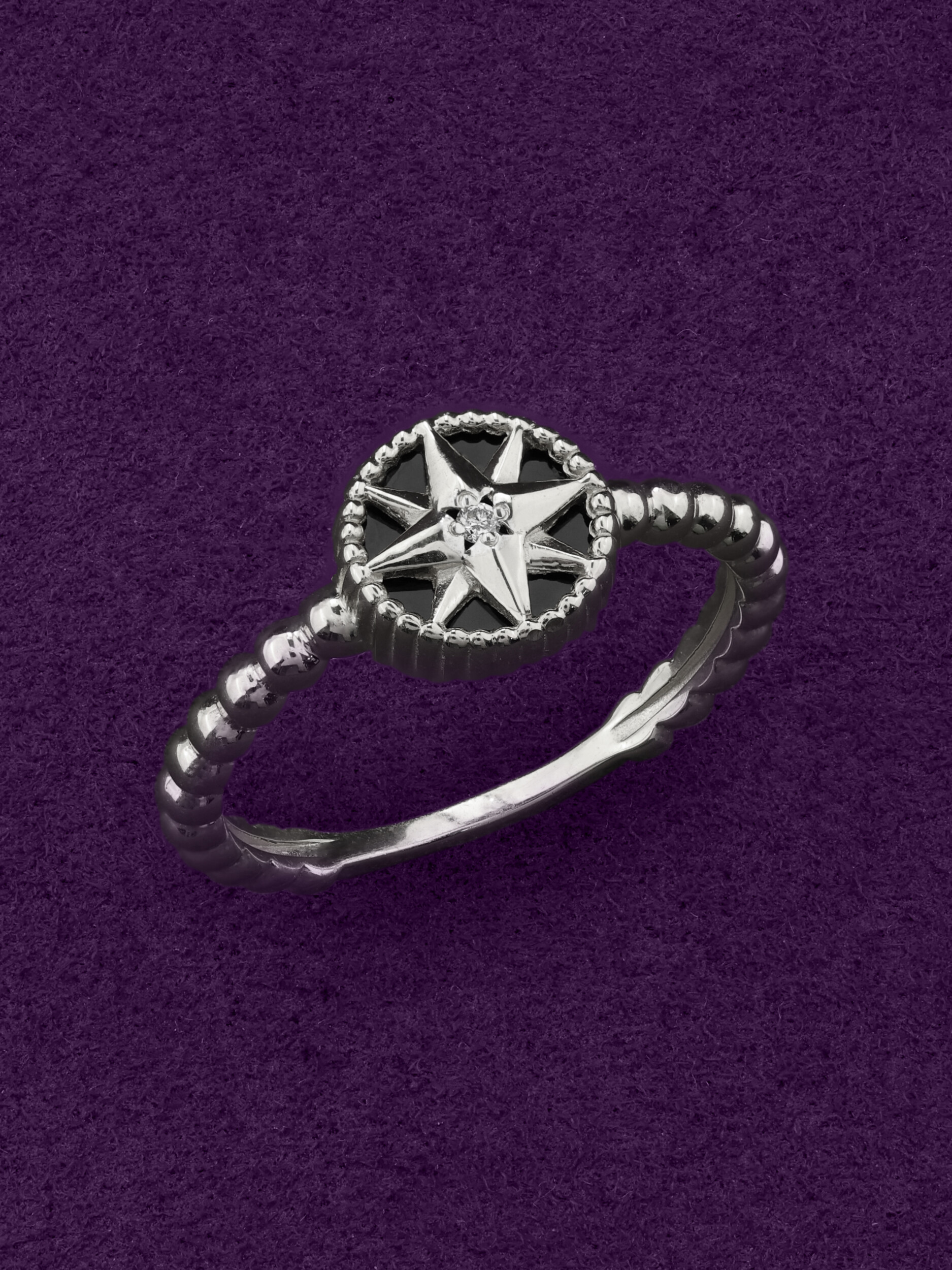 Кольцо из белого золота c бриллиантами и ониксом