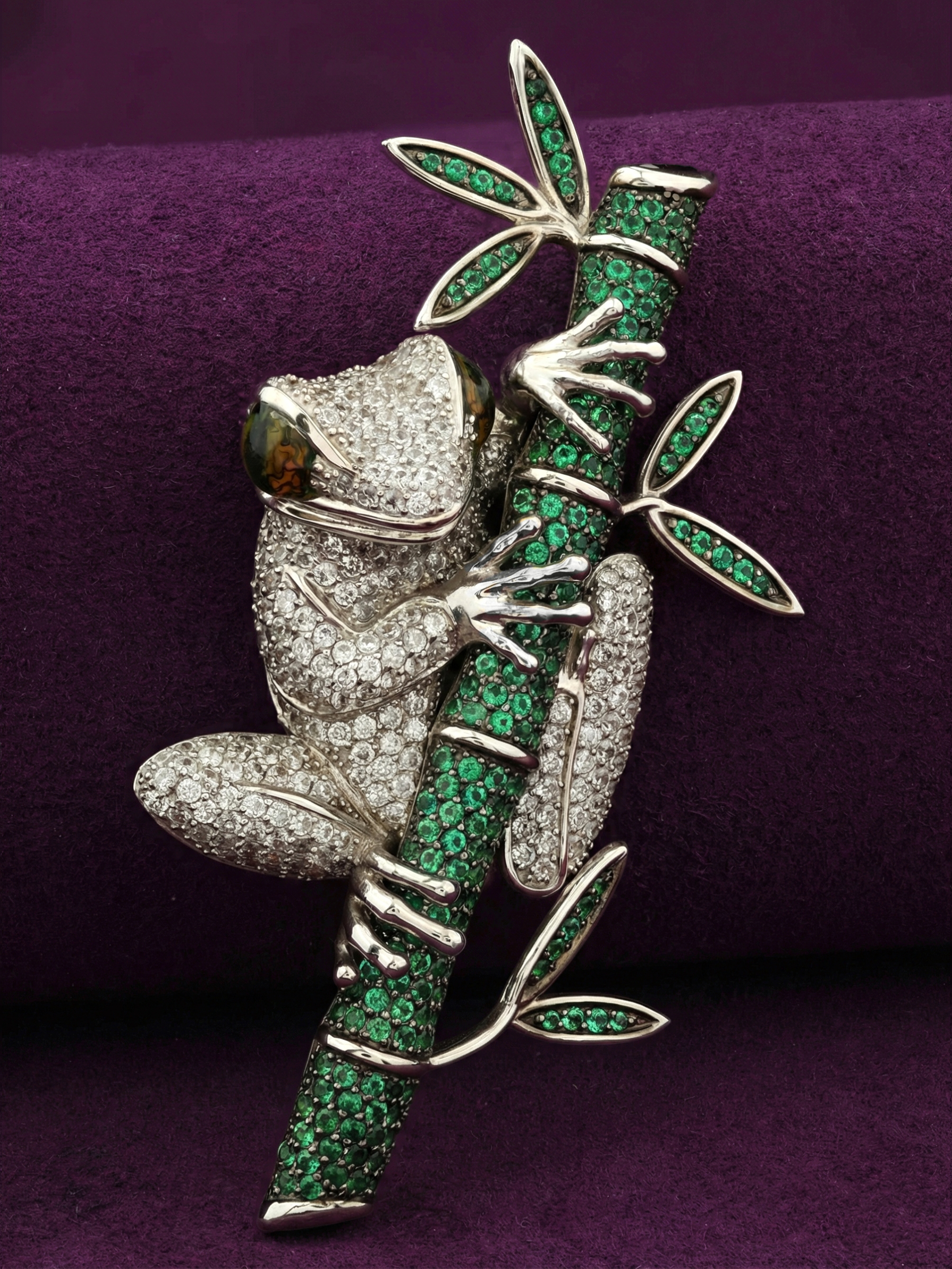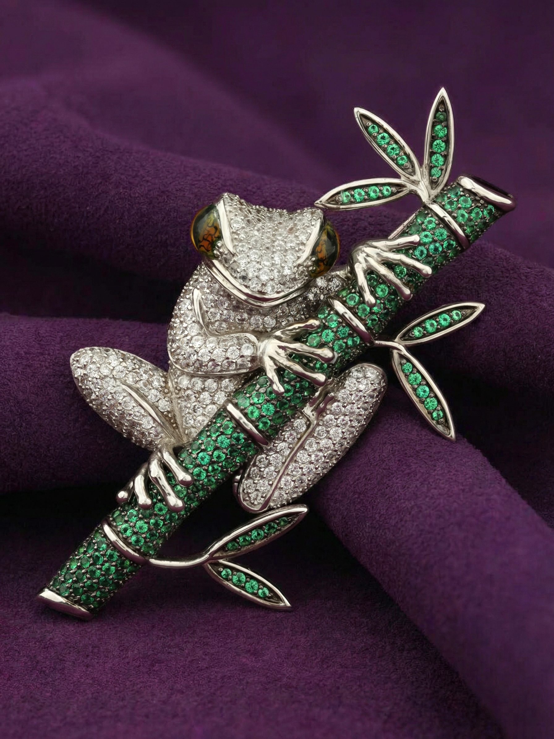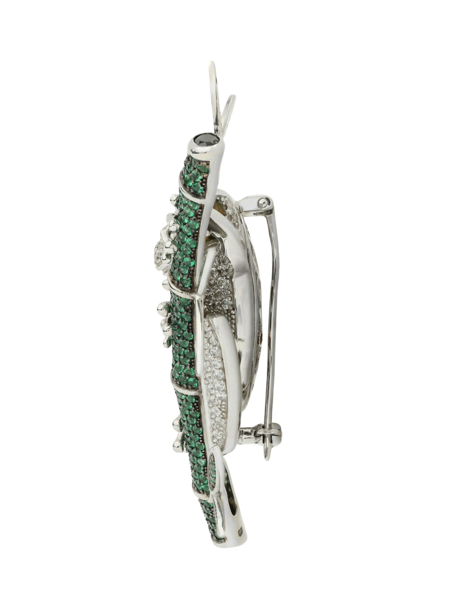 Брошь из белого золота c эмаль, фианитом и дымчатым кварцем