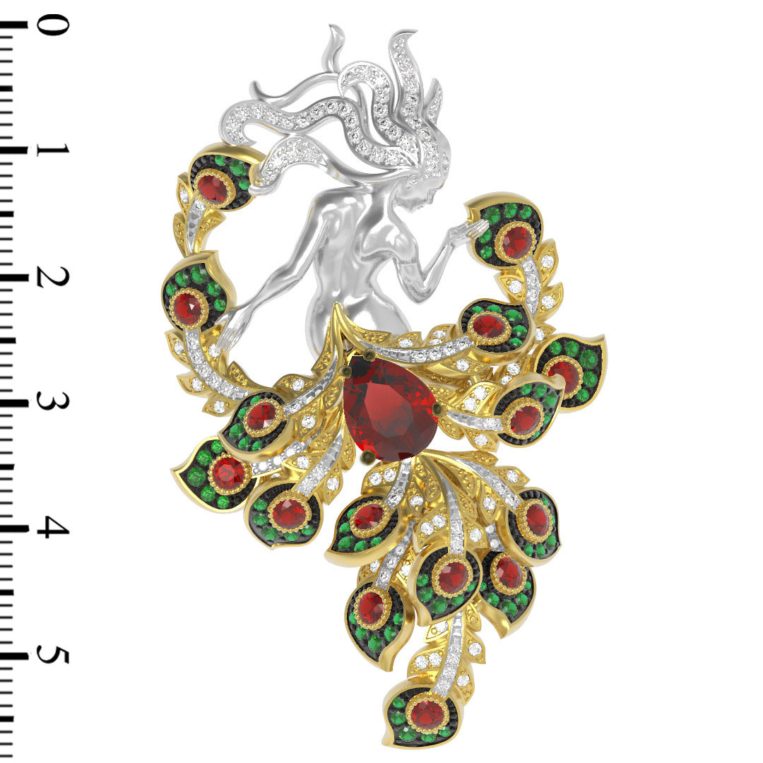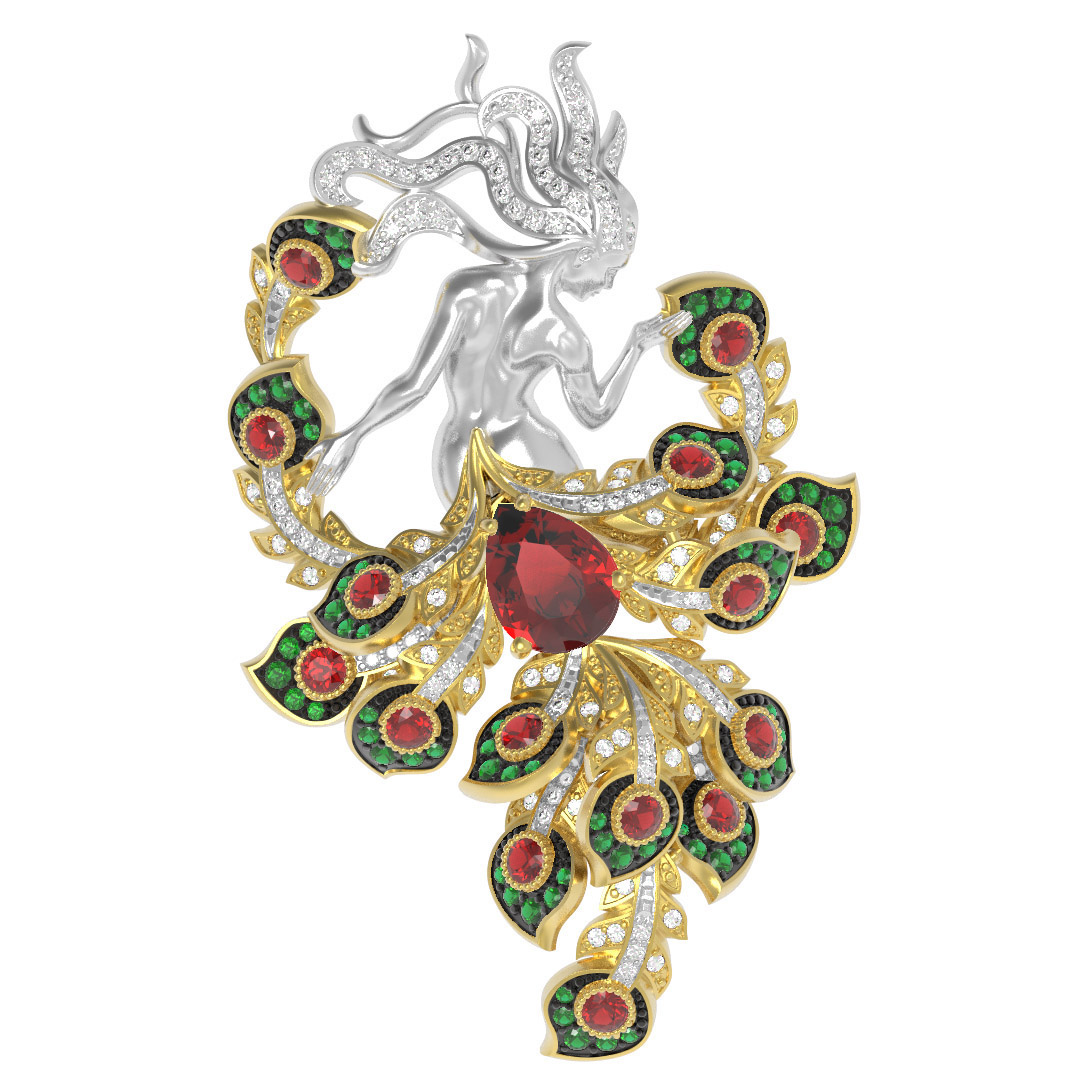 Брошь из лимонного золота c фианитом и гранатом