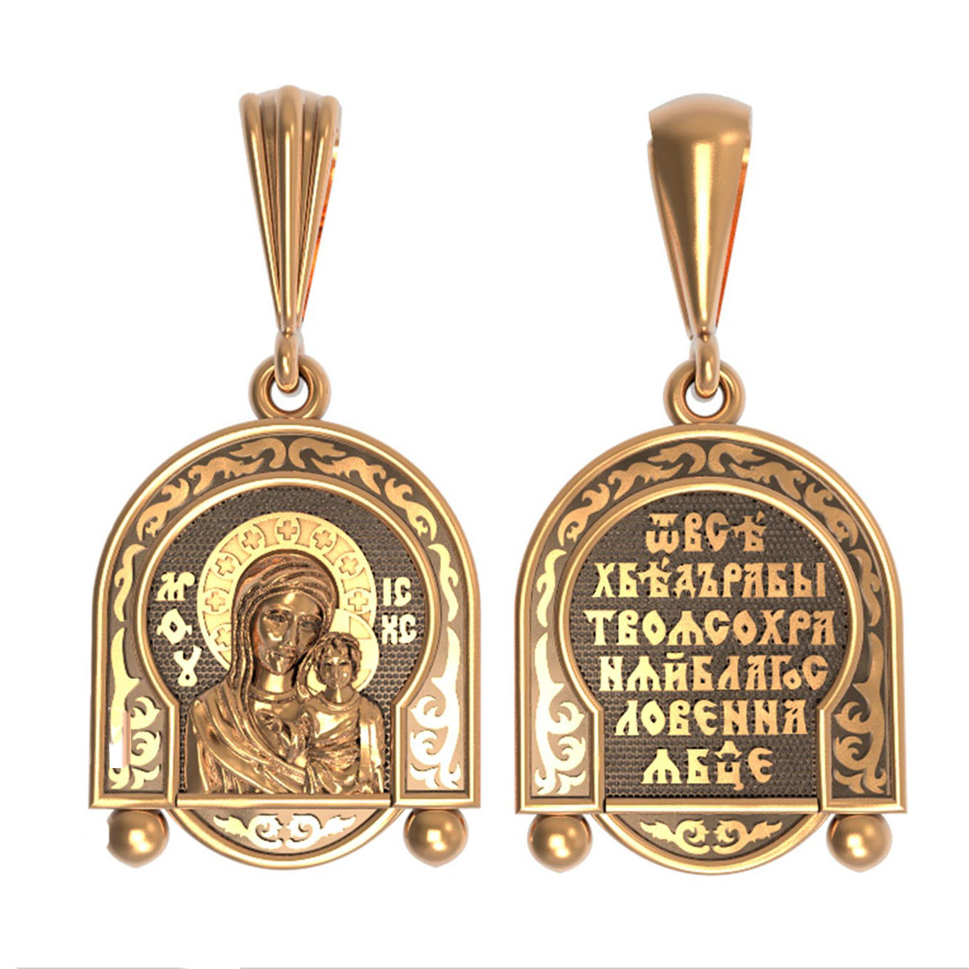 На лицевой части образка изображена Казанская икона Божией Матери — одна из самых почитаемых в России чудотворных икон Богородицы. Богословское значение Казанской иконы — указать верующим истинный Путь к спасению, который лежит через Христа. Только Божия Матерь имеет настолько сильное дерзновение к Спасителю, что может ходатайствовать перед Ним за всех верных. Именно этот образ дарится новой повенчанной паре, как хранитель очага и семейная реликвия. Молитва перед Казанской иконой Божьей Матери помогает во всех сложных случаях жизни, в болезнях, во всех печалях, невзгодах, скорбях. Уникальная история появления, чудеса, случившиеся по молитвам православных людей возле образа — все это делает Казанскую Богородицу особенной, среди тысяч других икон.