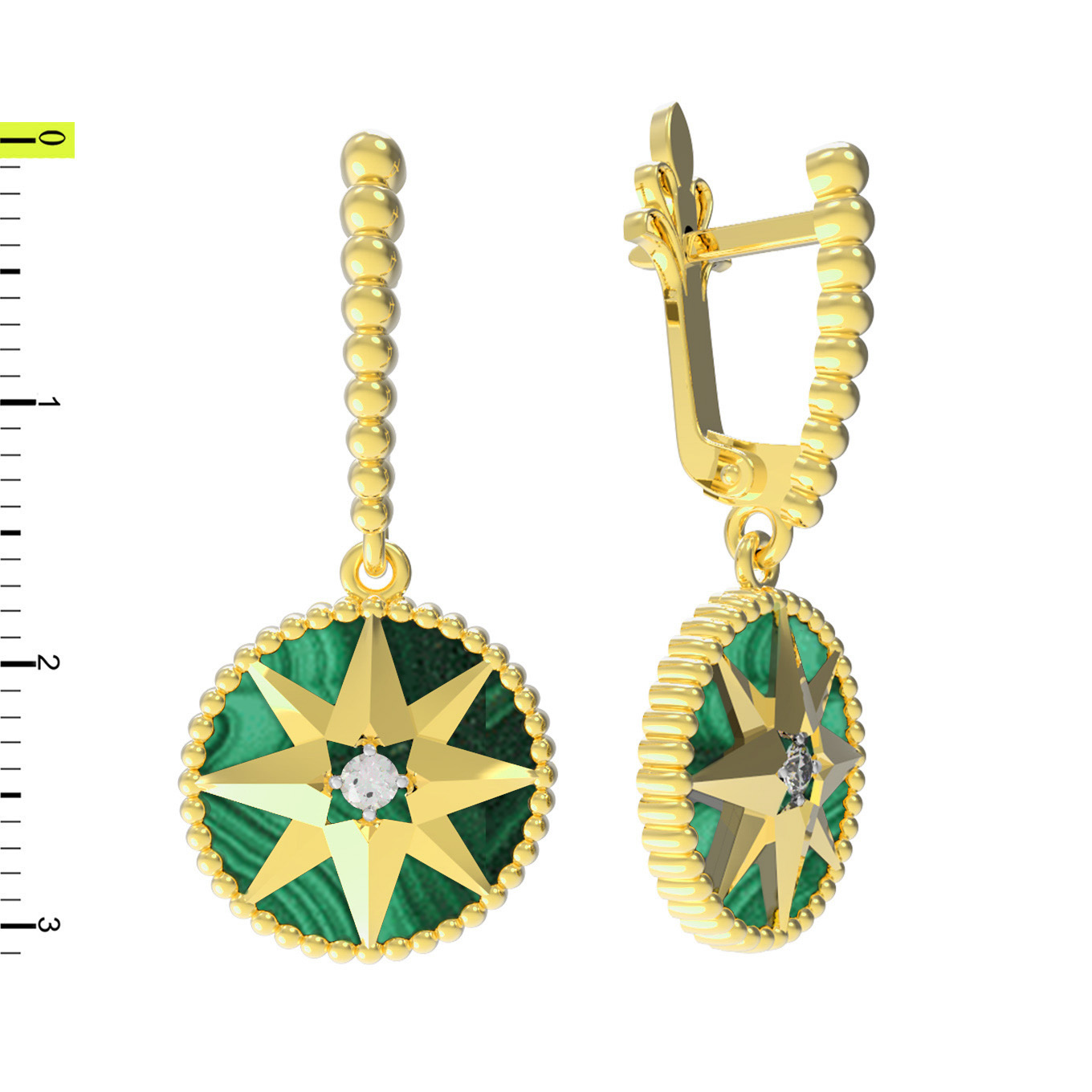 Серьги из лимонного золота c фианитом и малахитом