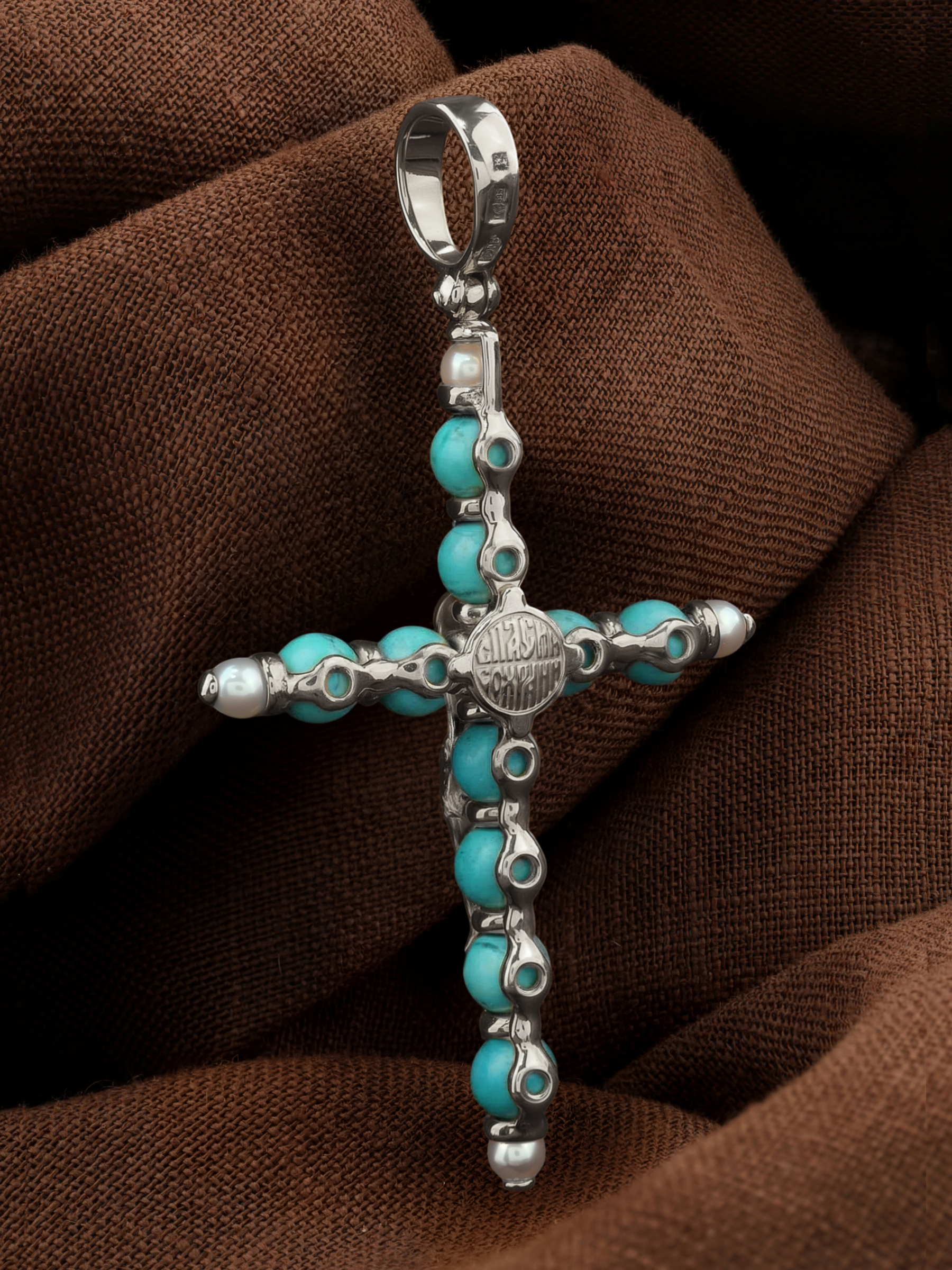 В центрально части оборотной стороны креста написана молитва: «Спаси и сохрани».