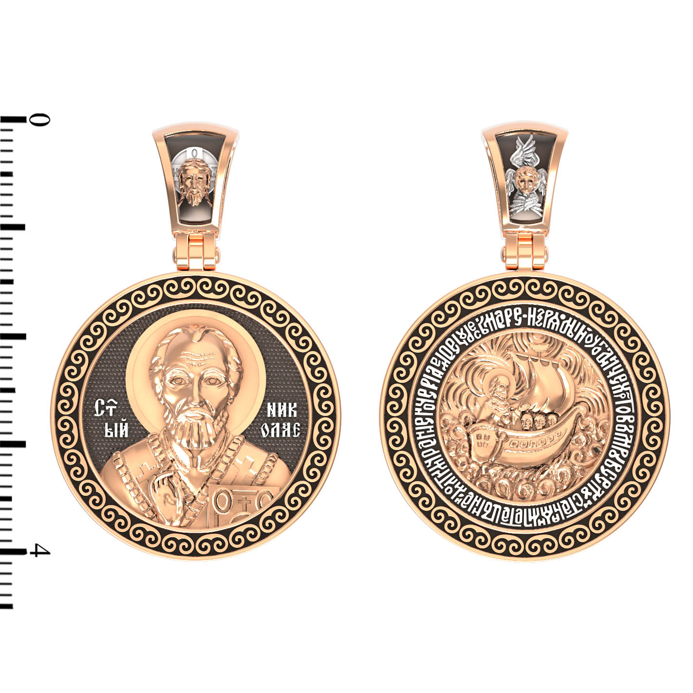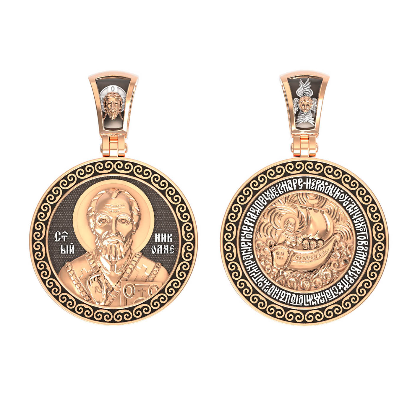 Лицевую сторону возглавляет икона Святителя Николая Чудотворца. Живший в III веке епископ Ликийского города Миры — самый почитаемый святой не только в России, но и во всем мире. Николай Чудотворец, помощник в делах, покровитель учащихся, утешитель обиженных и нуждающихся, целитель самых страшных и тяжелых недугов, предстатель и молитвенник за людей перед Богом. Также Святитель Николай Чудотворец известен своими молитвами за путешественников, когда непрестанный ветер и бушующие волны утихают и корабль заходит в спокойную гавань.