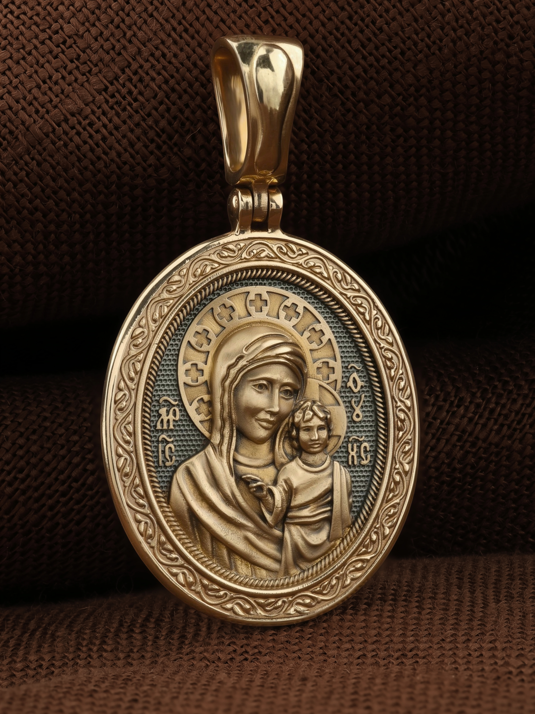 На обороте изображена Казанская икона Божией Матери — одна из самых почитаемых в России чудотворных икон Богородицы. Богословское значение Казанской иконы — указать верующим истинный Путь к спасению, который лежит через Христа. Только Божия Матерь имеет настолько сильное дерзновение к Спасителю, что может ходатайствовать перед Ним за всех верных. Именно этот образ дарится новой повенчанной паре, как хранитель очага и семейная реликвия. Молитва перед Казанской иконой Божьей Матери помогает во всех сложных случаях жизни, в болезнях, во всех печалях, невзгодах, скорбях. Уникальная история появления, чудеса, случившиеся по молитвам православных людей возле образа — все это делает Казанскую Богородицу особенной, среди тысяч других икон.