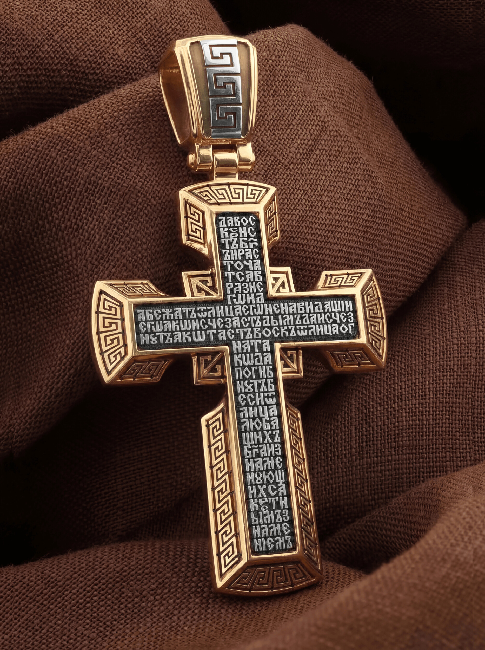 На обороте креста написан начальный стих оградительной молитвы Честному Кресту Господню. Эту молитву читают в опасности, а также носят при себе для защиты от злых сил: «Да воскреснет Бог, и расточатся врази Его, и да бежат от лица Его ненавидящии Его. Яко исчезает дым, да исчезнут; яко тает воск от лица огня, тако да погибнут беси от лица любящих Бога и знаменующихся крестным знамением, и в веселии глаголющих: радуйся, Пречестный и Животворящий Кресте Господень, прогоняй бесы силою на тебе пропятаго Господа нашего Иисуса Христа, во ад сшедшаго и поправшаго силу диаволю, и даровавшаго нам тебе Крест Свой Честный на прогнание всякаго супостата. О, Пречестный и Животворящий Кресте Господень! Помогай ми со Святою Госпожею Девою Богородицею и со всеми святыми во веки. Аминь».
