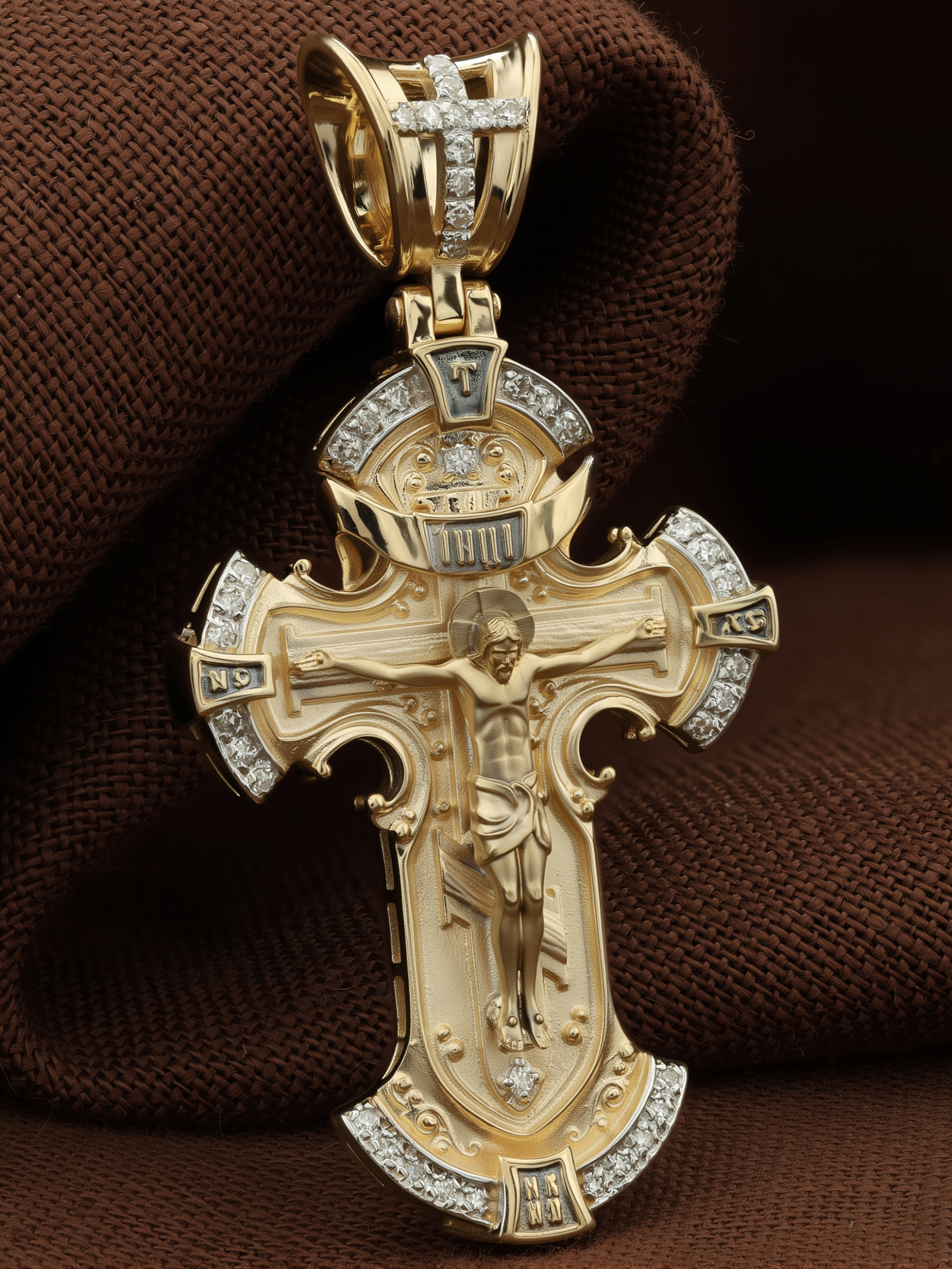 На лицевой стороне креста изображено Распятие Господа и Спасителя нашего Иисуса Христа, отдавшего Себя на смерть, для искупления грехов мира. Крест является символом жертвенной любви Всеблагого Бога к падшим людям, всепобеждающим духовным оружием христиан, основанием и средоточием церковной жизни. Господь сказал: кто хочет идти за Мною, отвергнись себя, и возьми крест свой, и следуй за Мною. (Мк. 8: 34). Верхняя перекладина символизирует титло — табличка, на которой, согласно Евангелию, было начертано: Иисус Назорей Царь Иудейский (IНЦI). Справа и слева от Распятия изображены символы «IС ХС» — святое имя Христа. Внизу креста написано слово «НИКА», что значит «победитель». В верхней части креста обозначена буква «Т», которая символизирует одно из орудий страданий Господа — трость.