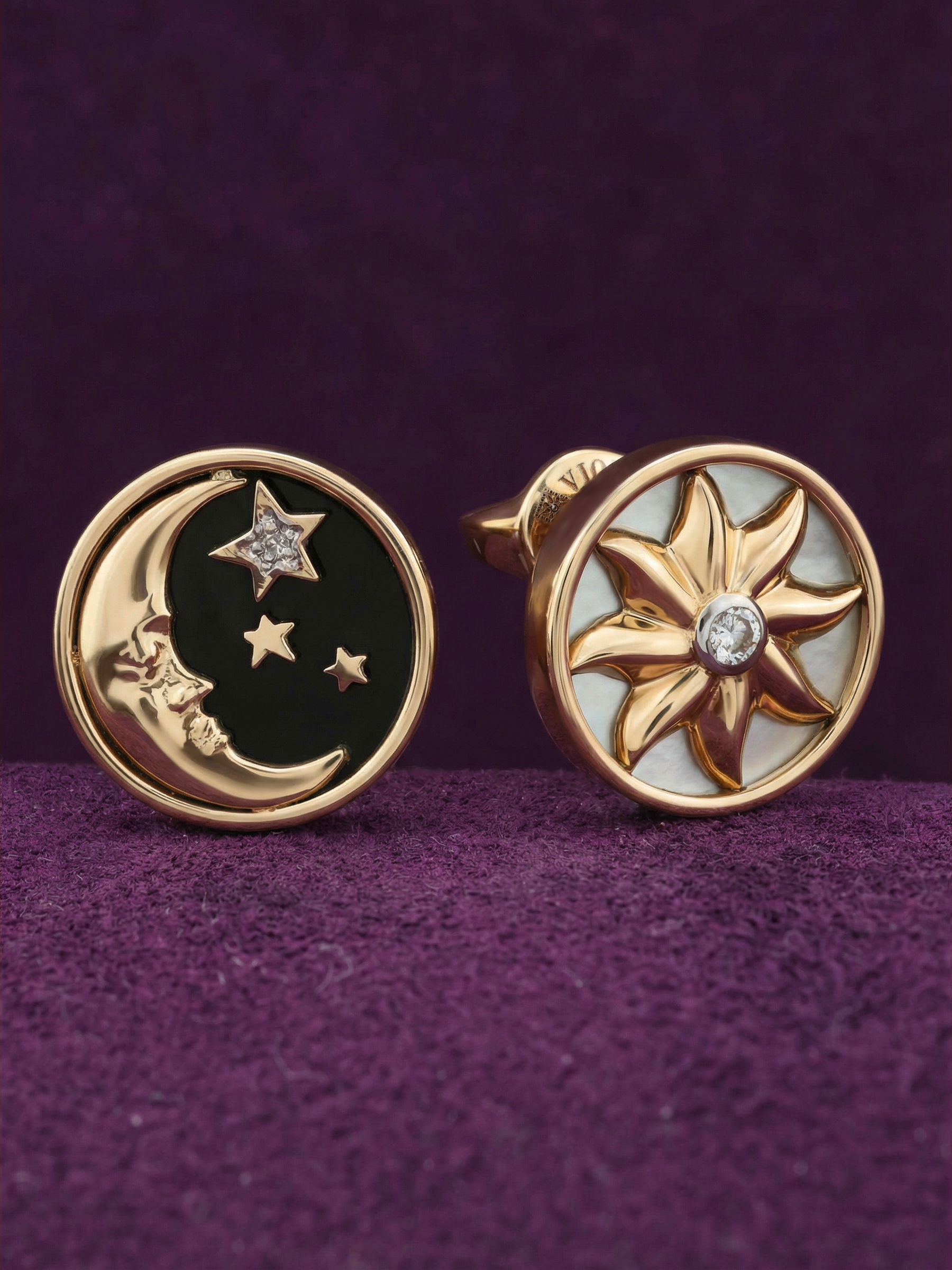 Серьги из золота c бриллиантами, ониксом и перламутром