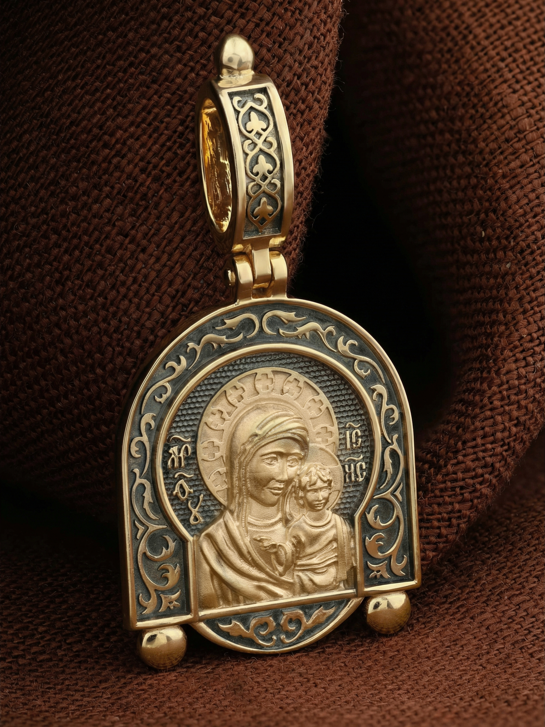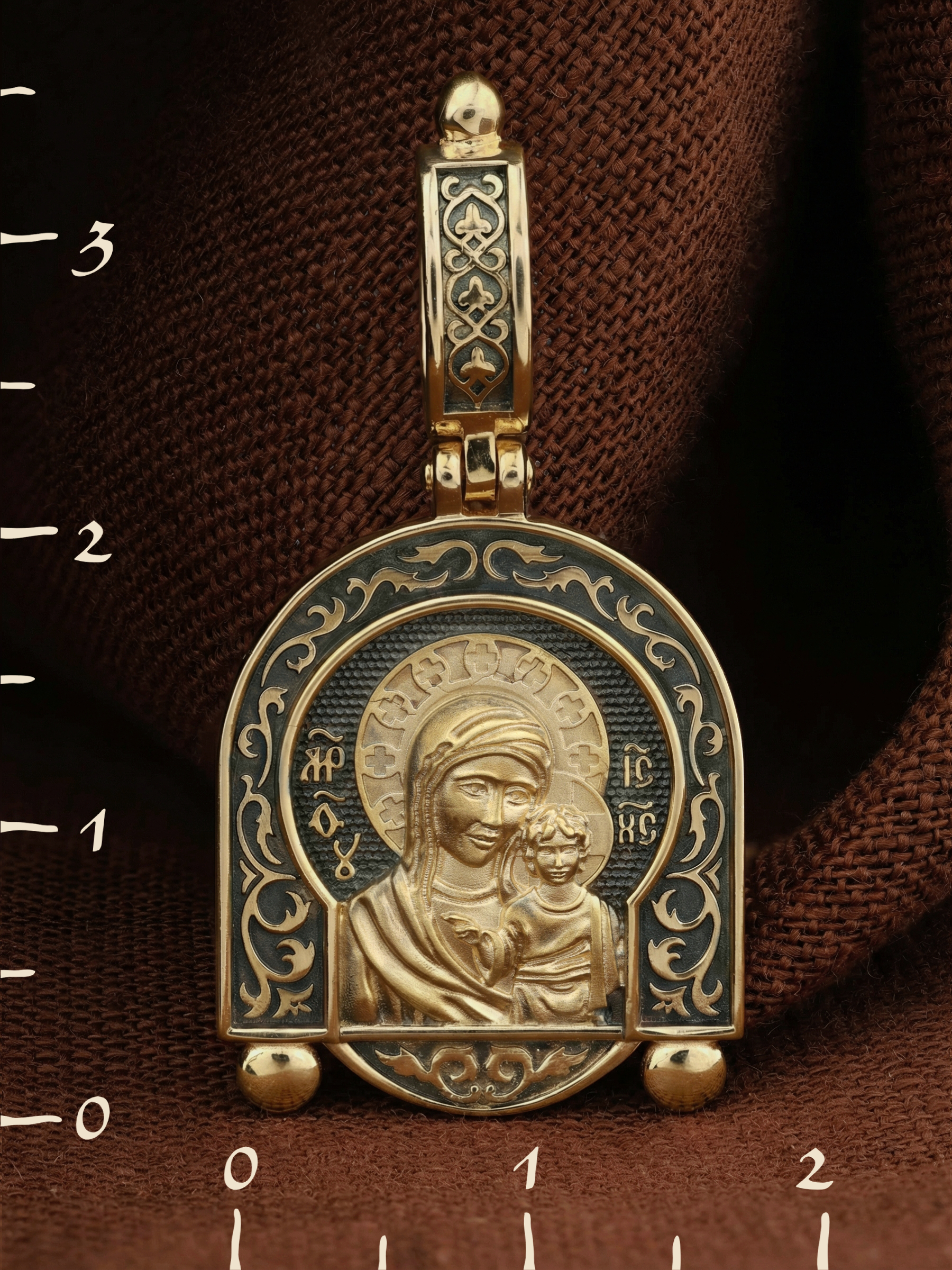 На лицевой части образка изображена Казанская икона Божией Матери — одна из самых почитаемых в России чудотворных икон Богородицы. Богословское значение Казанской иконы — указать верующим истинный Путь к спасению, который лежит через Христа. Только Божия Матерь имеет настолько сильное дерзновение к Спасителю, что может ходатайствовать перед Ним за всех верных. Именно этот образ дарится новой повенчанной паре, как хранитель очага и семейная реликвия. Молитва перед Казанской иконой Божьей Матери помогает во всех сложных случаях жизни, в болезнях, во всех печалях, невзгодах, скорбях. Уникальная история появления, чудеса, случившиеся по молитвам православных людей возле образа — все это делает Казанскую Богородицу особенной, среди тысяч других икон.
