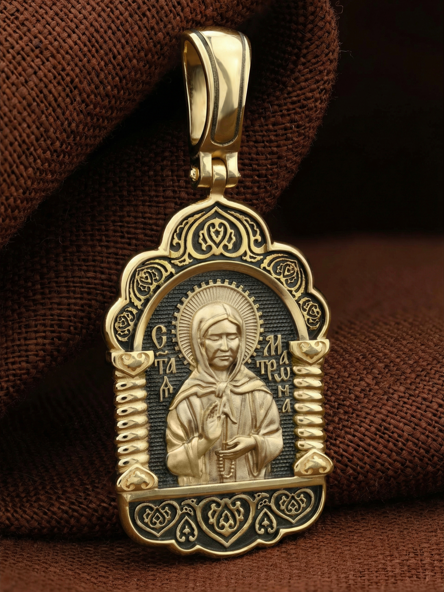 На обороте образка написана молитва: «О блаженная мати Матроно, услыши насгрешных, молящихся к Тебе
