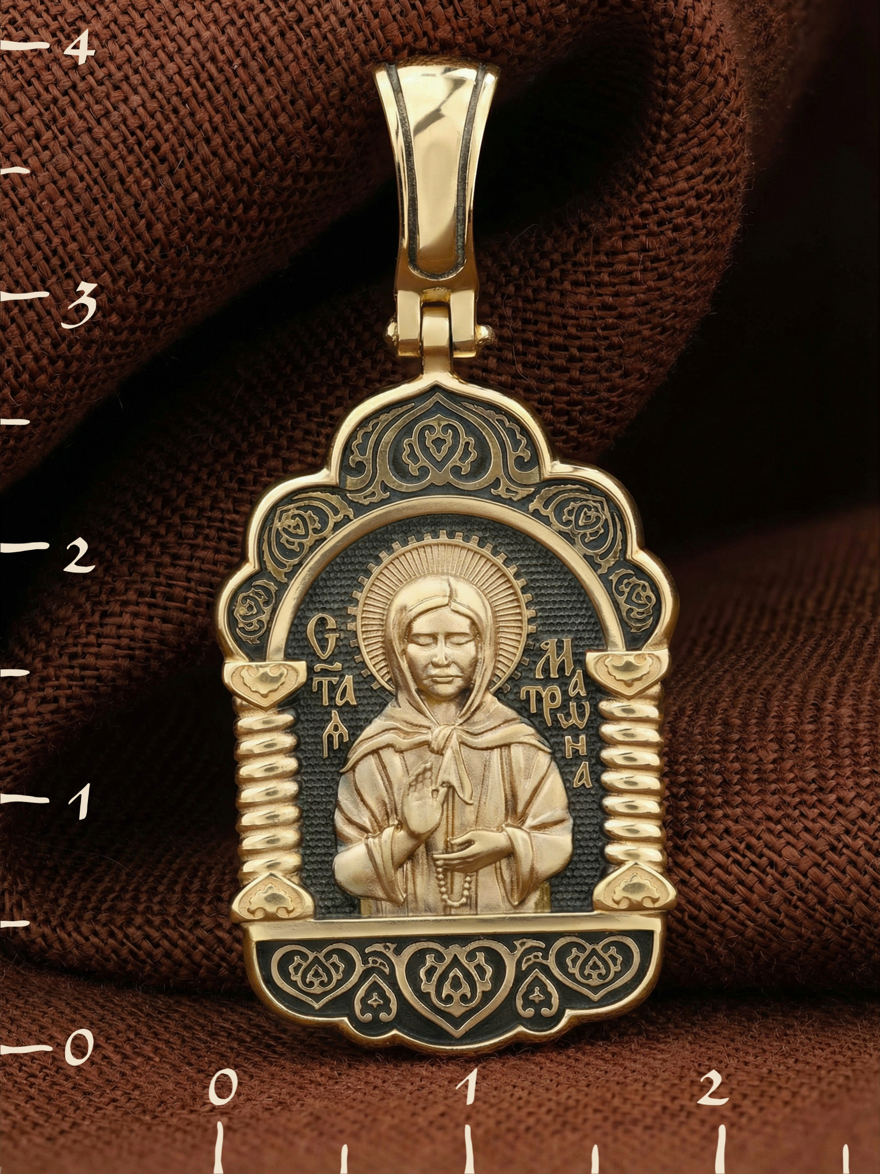 На лицевой стороне образка изображена Святая Матрона Московская.