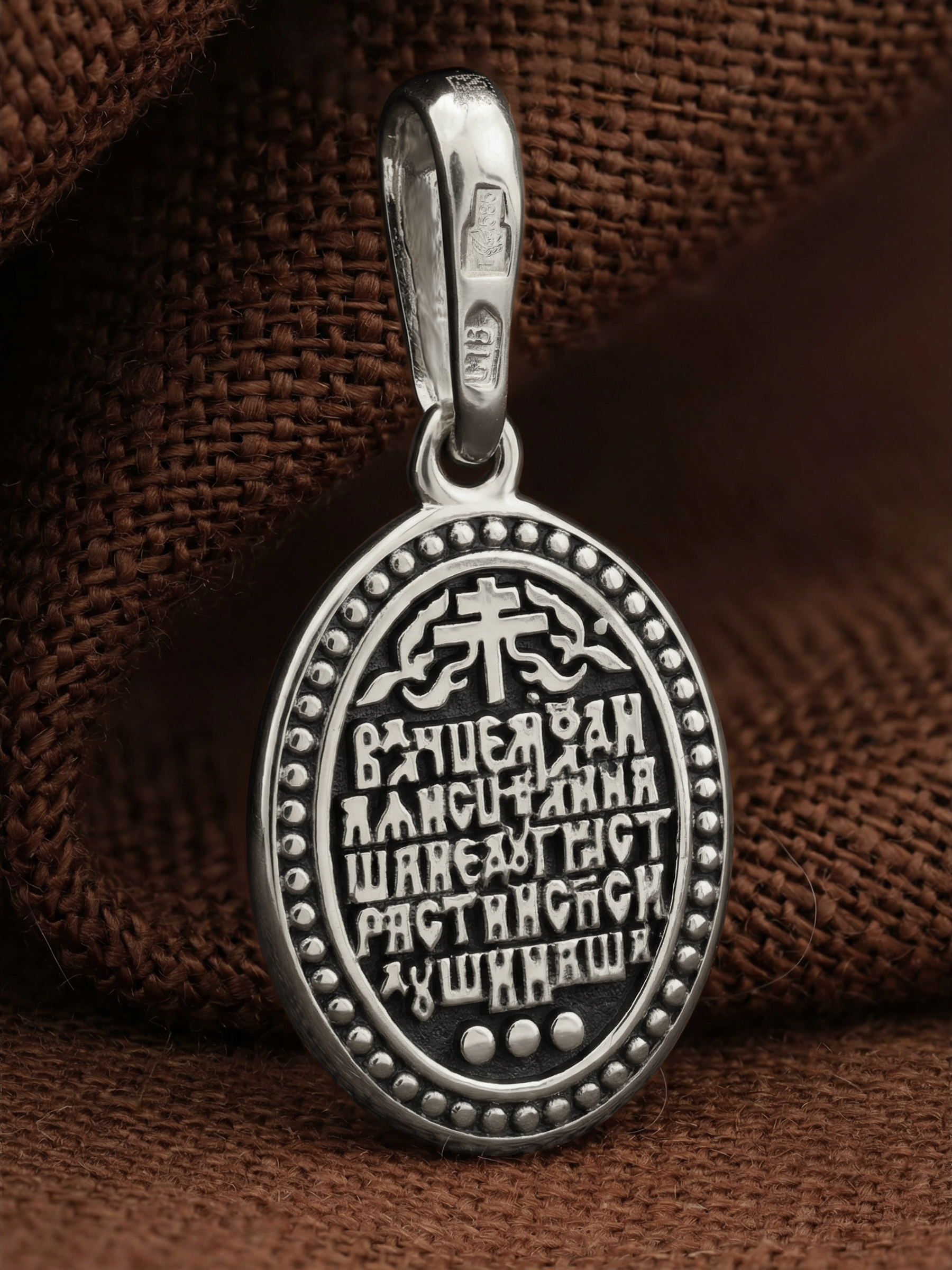 На лицевой части образка изображена икона Божией Матери «Неупиваемая чаша». Икона славится помощью в исцелении зависимостей, помогает людям обрести свободу от греховных страстей.