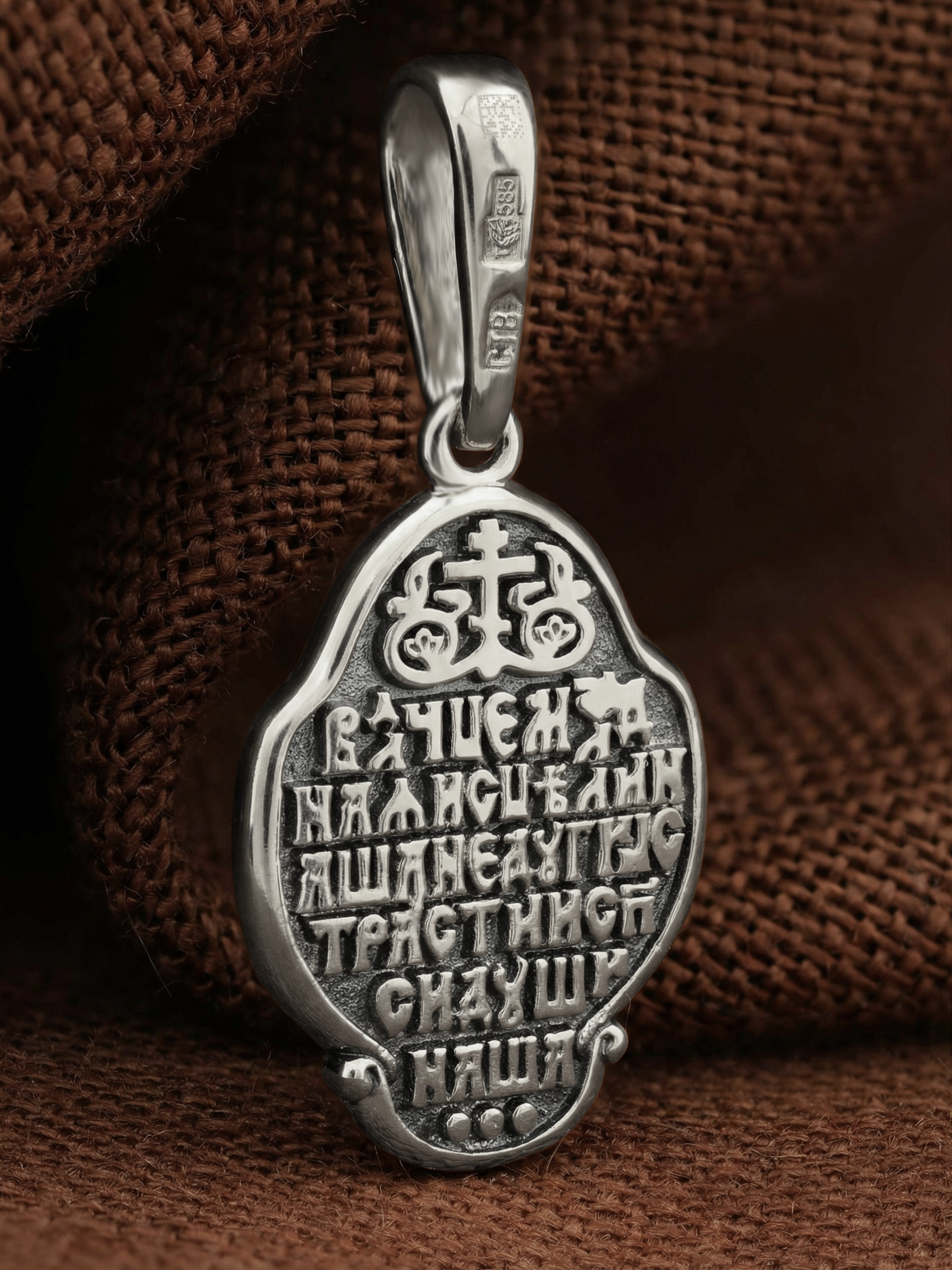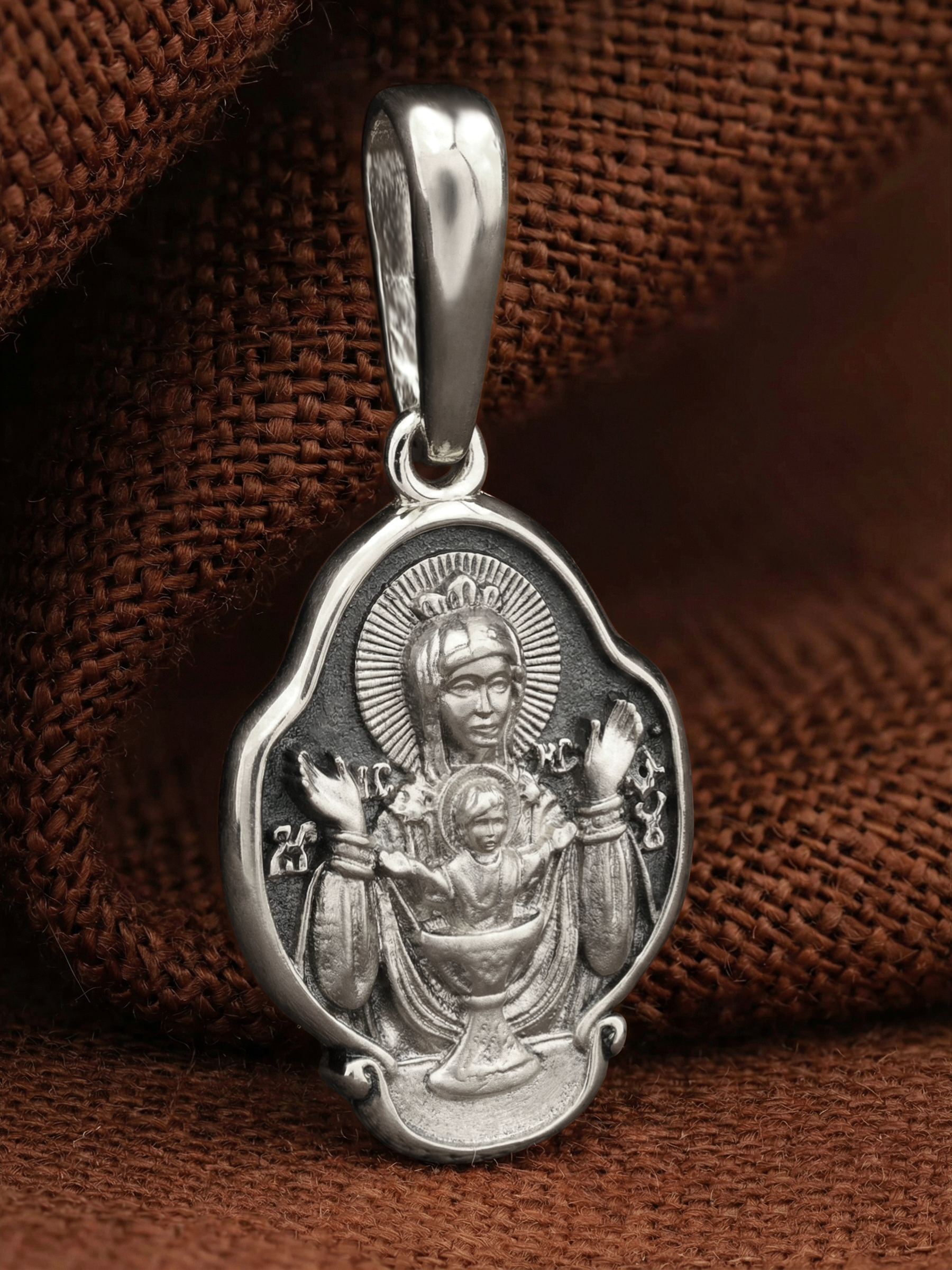 На лицевой части образка изображена икона Божией Матери «Неупиваемая чаша». Икона славится помощью в исцелении зависимостей, помогает людям обрести свободу от греховных страстей.