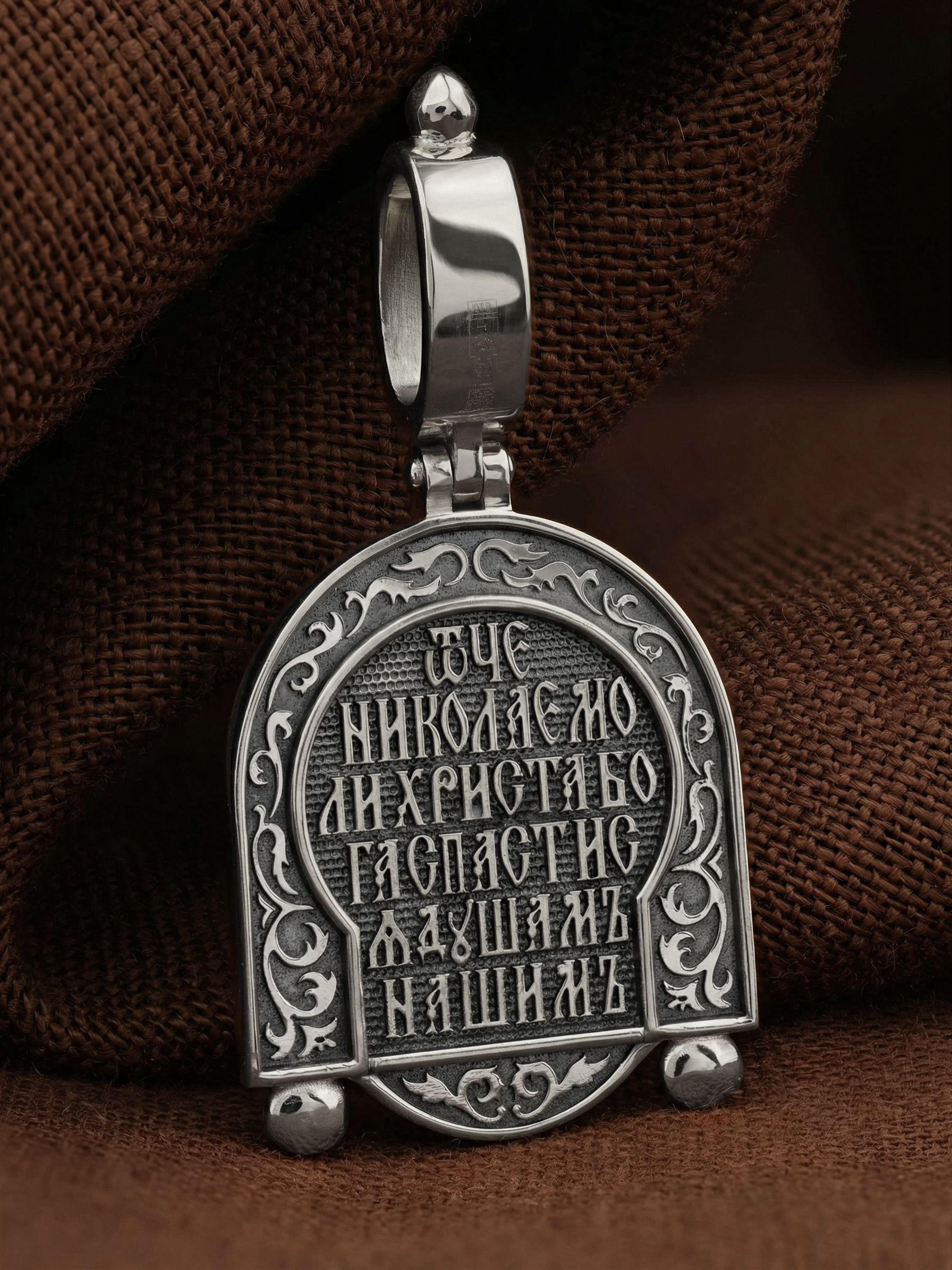 На оборотной стороне образка написаны слова молитвы: «Отче Николае, моли Христа Бога спастися душам нашим».