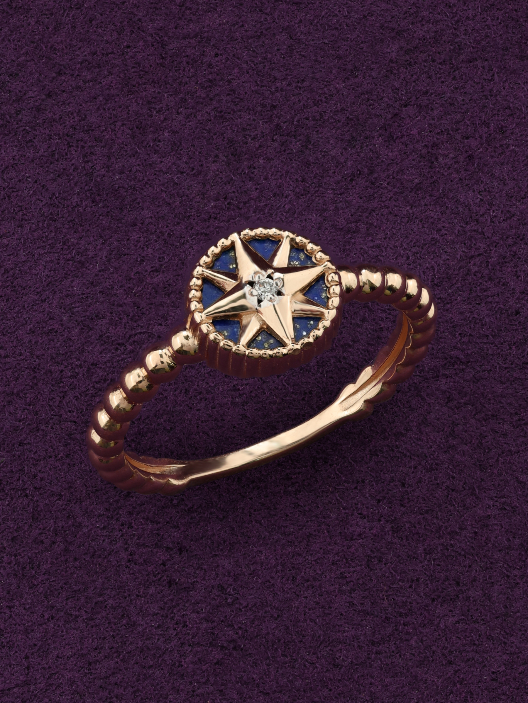 Кольцо из лимонного золота c бриллиантами и лазуритом