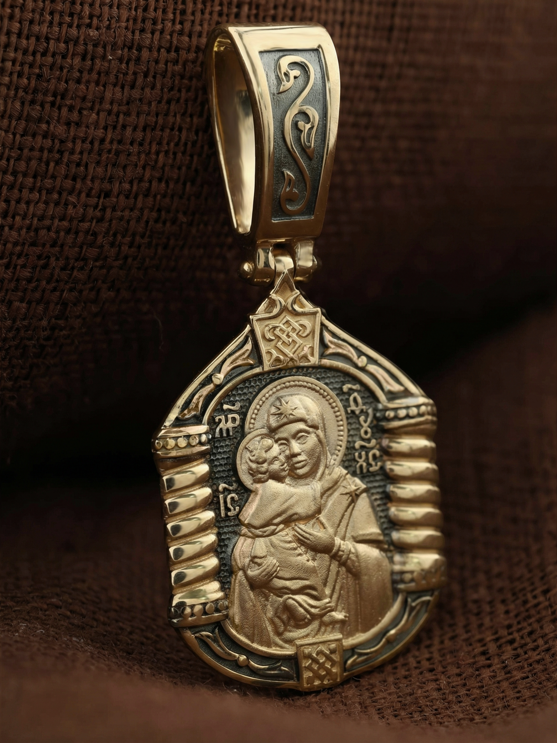 На лицевой стороне образка изображена Владимирская икона Божией Матери.