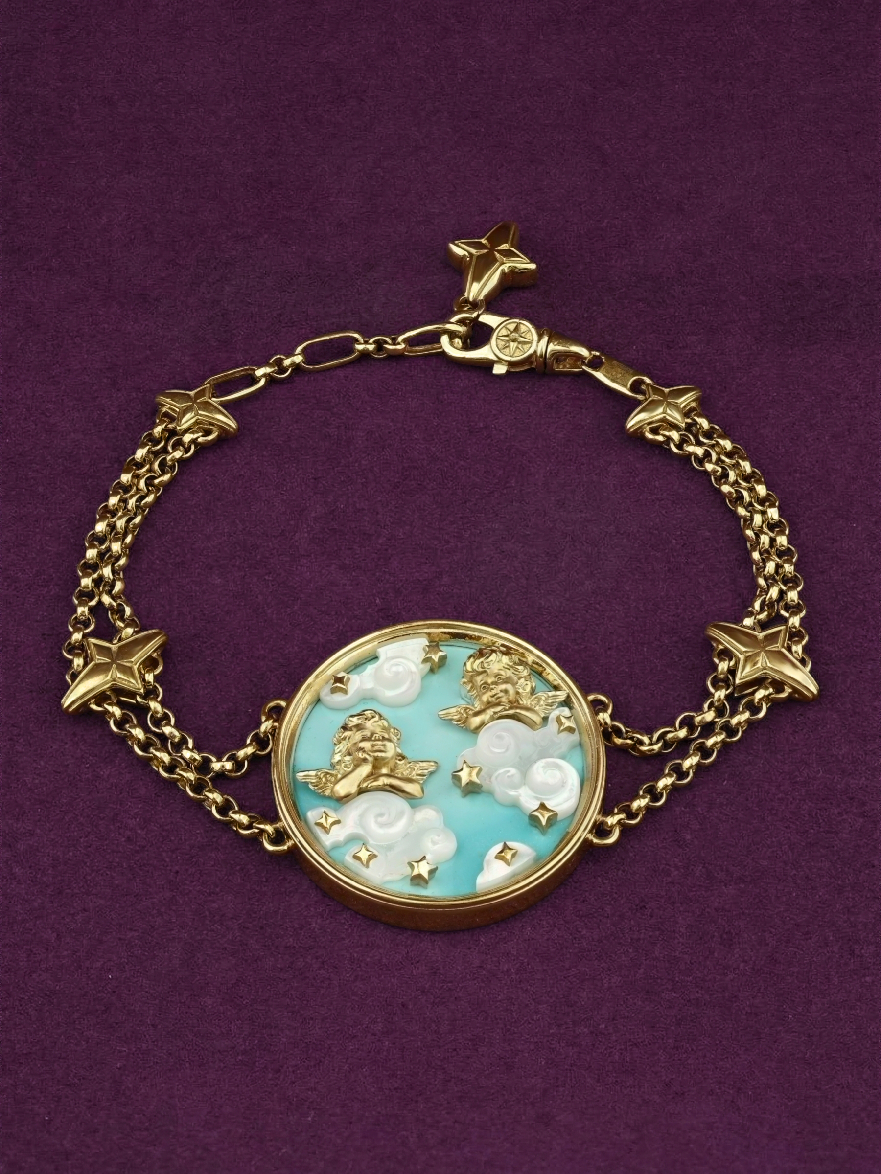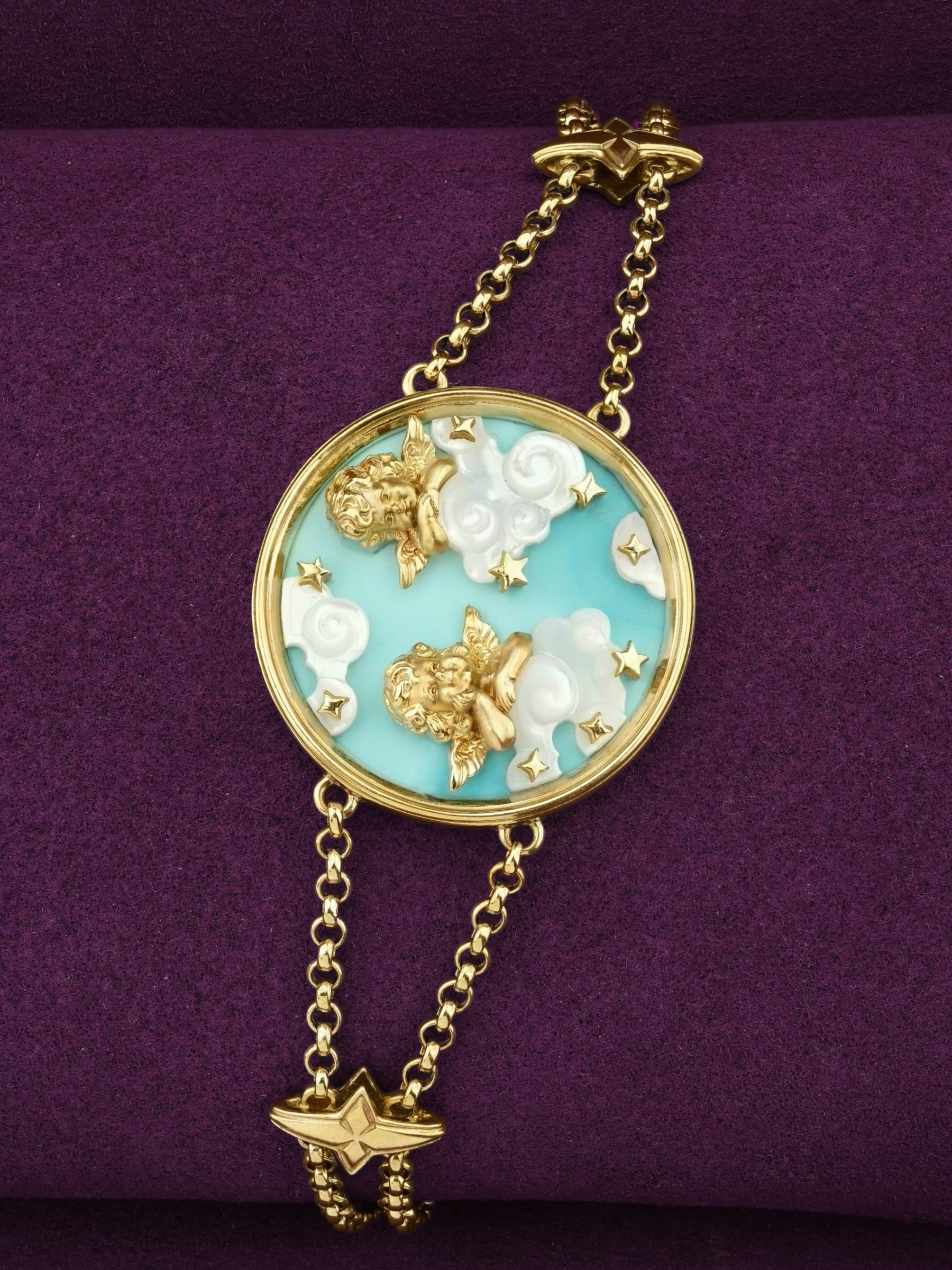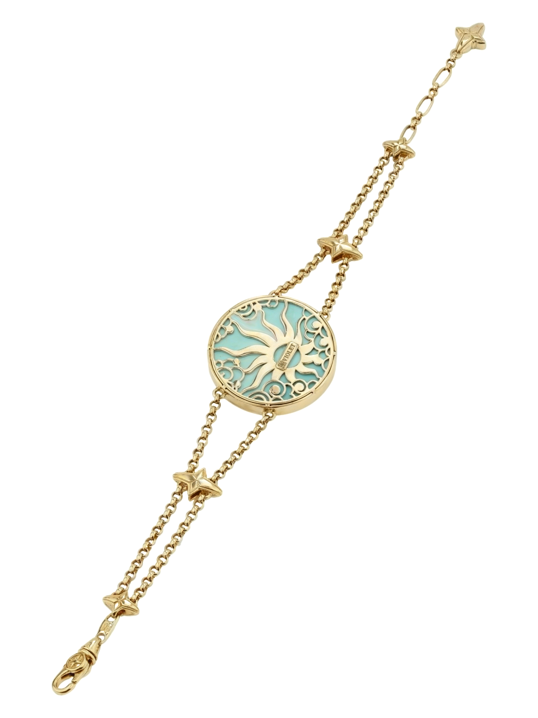 Браслет из лимонного золота c бирюзой и перламутром