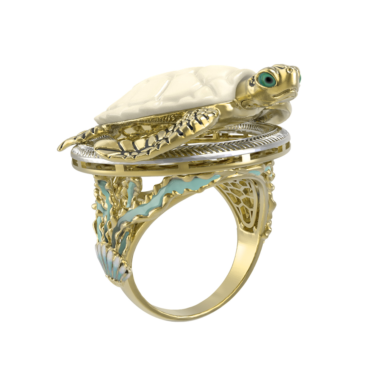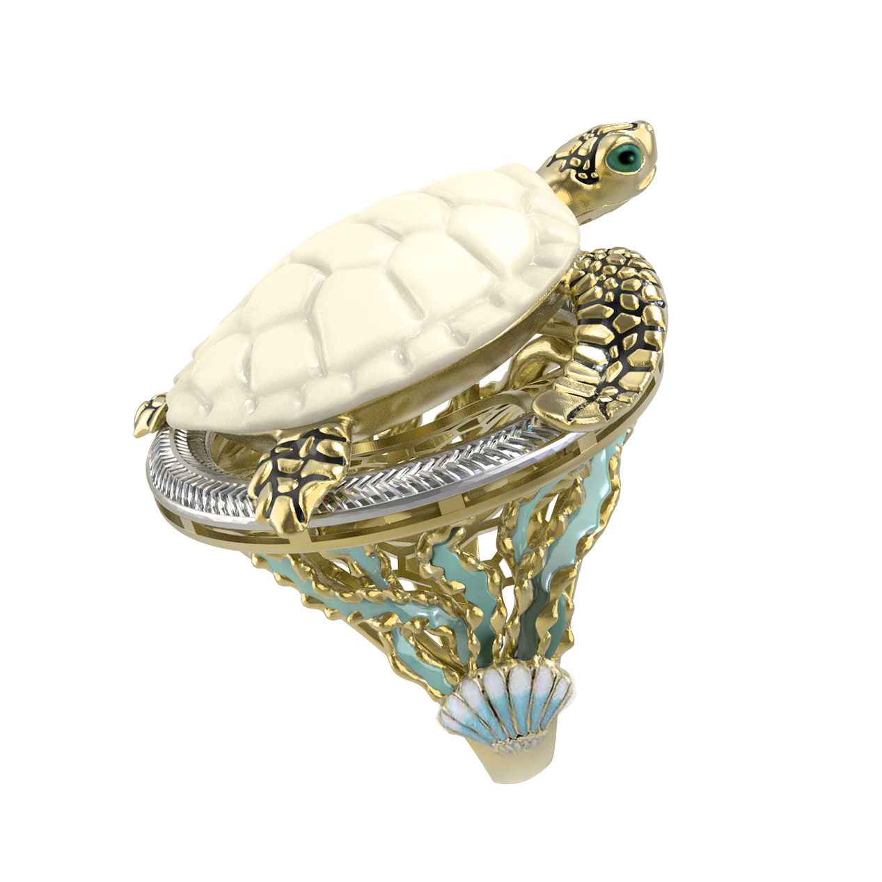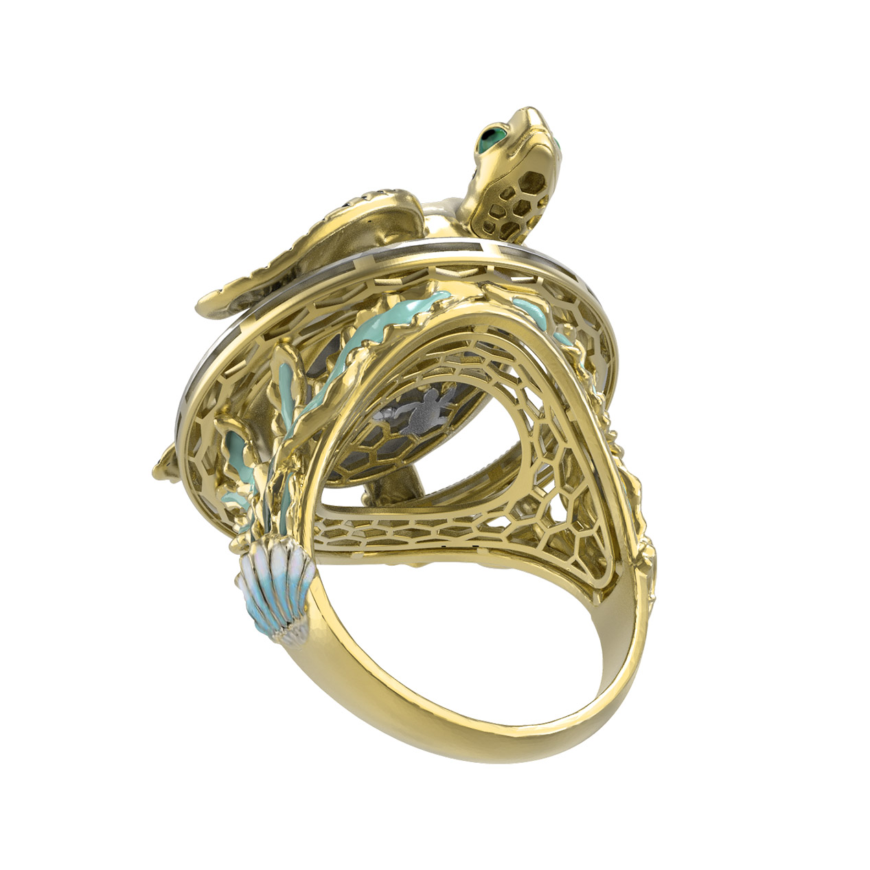 Кольцо из лимонного золота c эмаль и бивнем мамонта