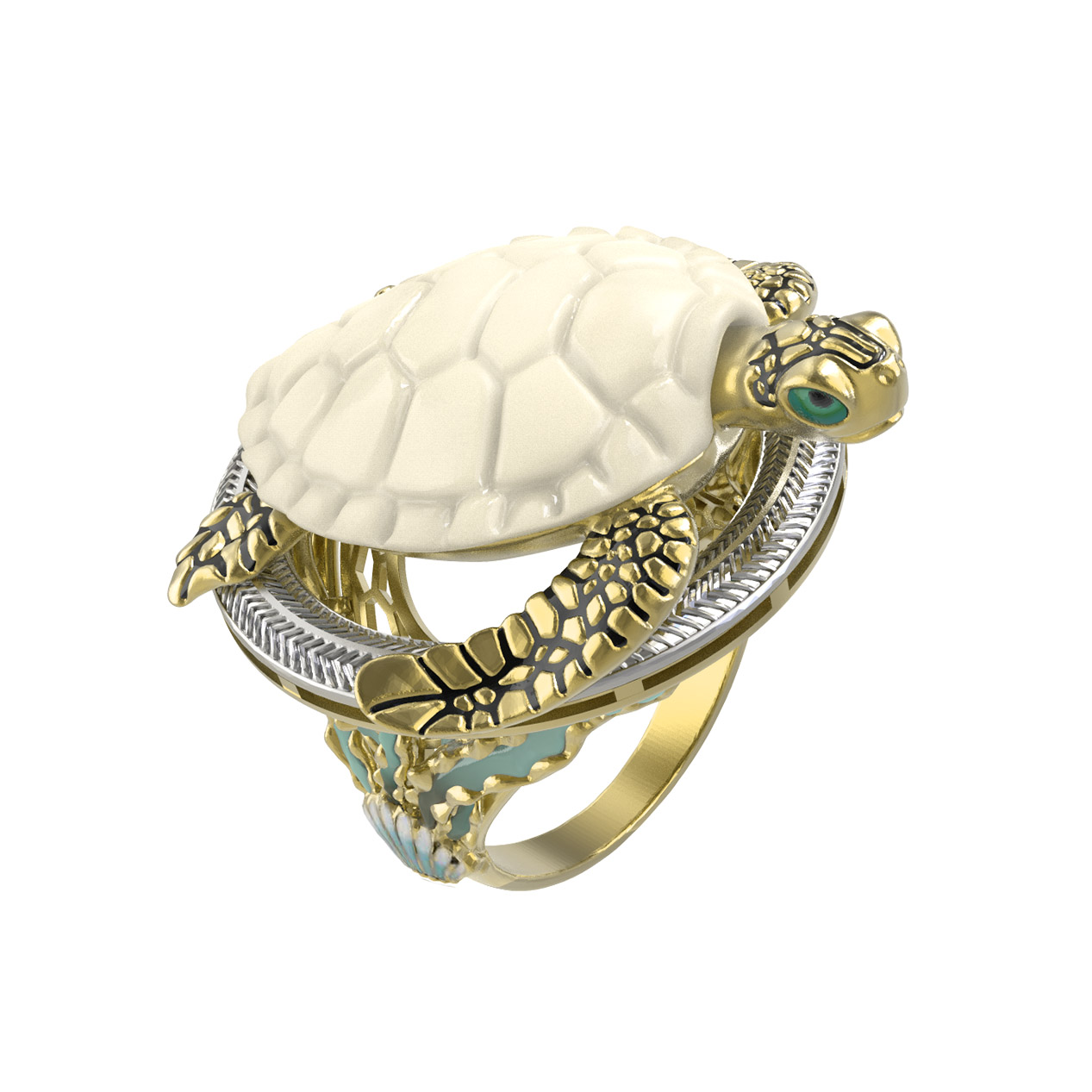 Кольцо из лимонного золота c эмаль и бивнем мамонта