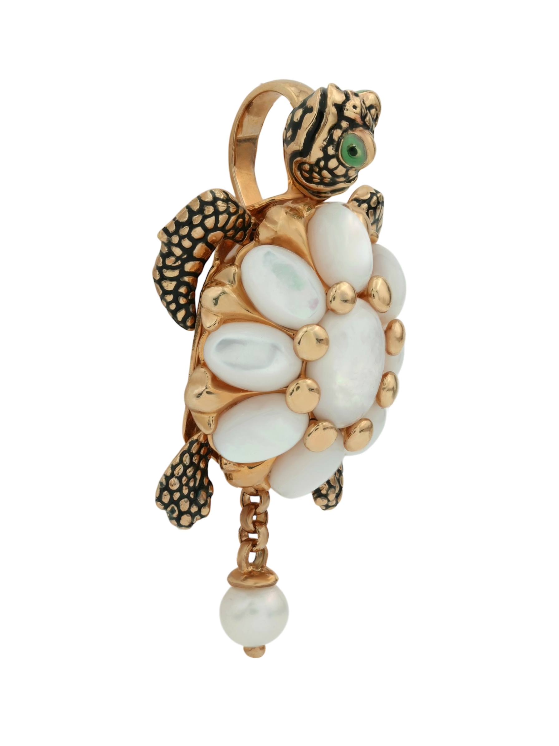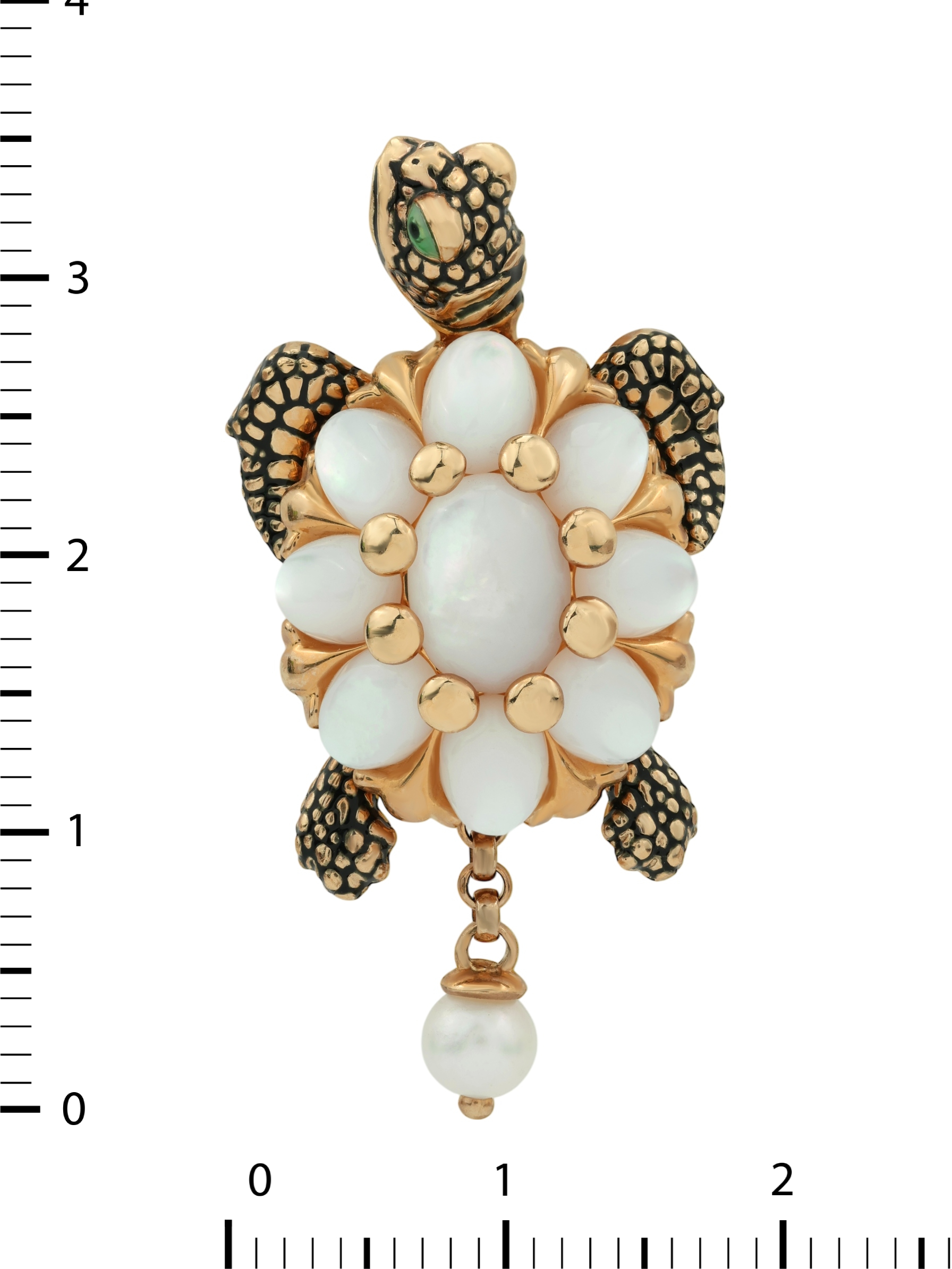 Подвеска из золота c эмаль, жемчугом и перламутром