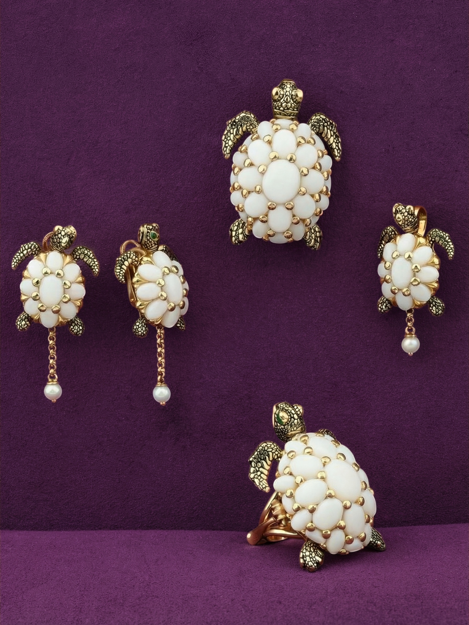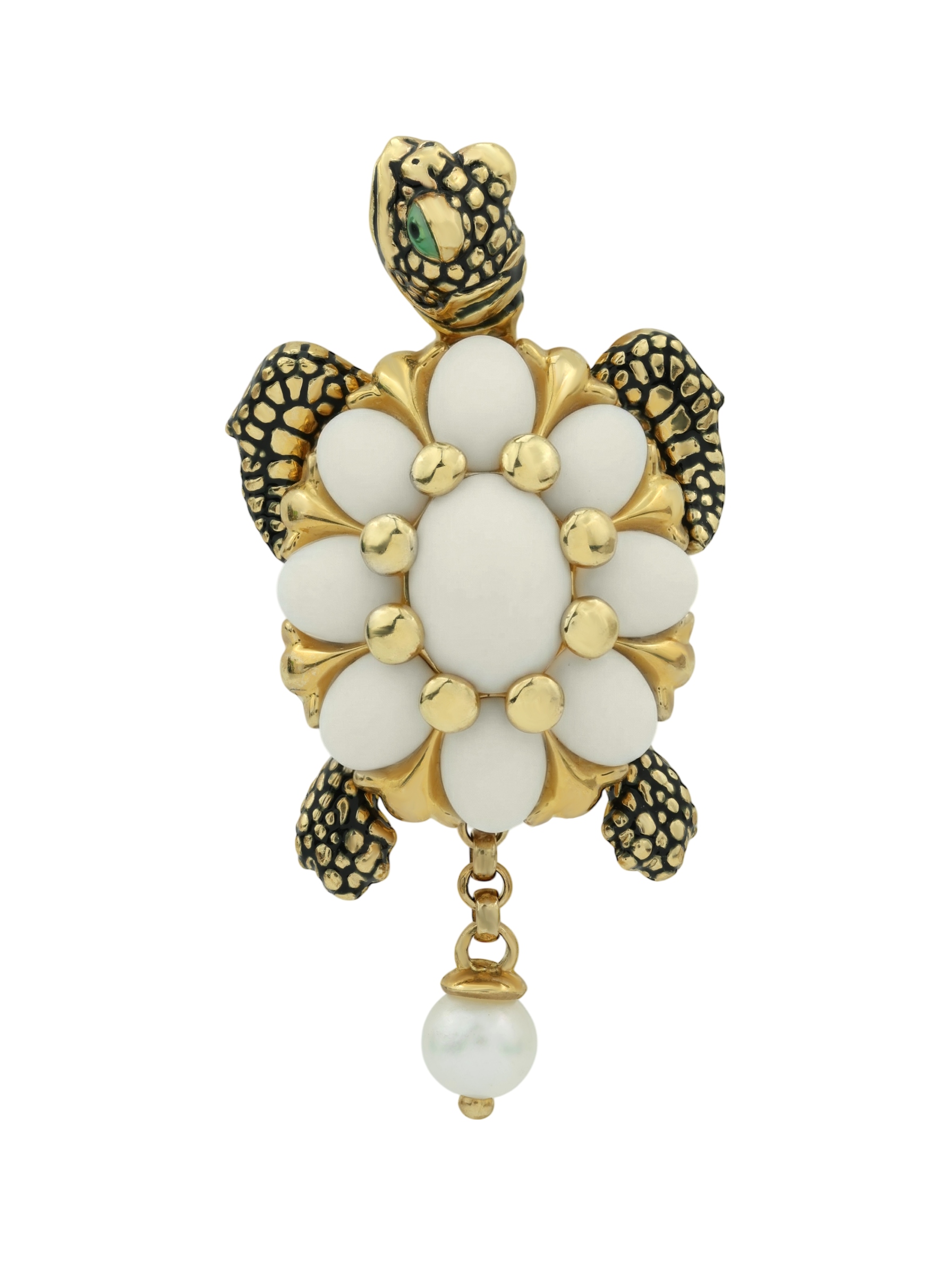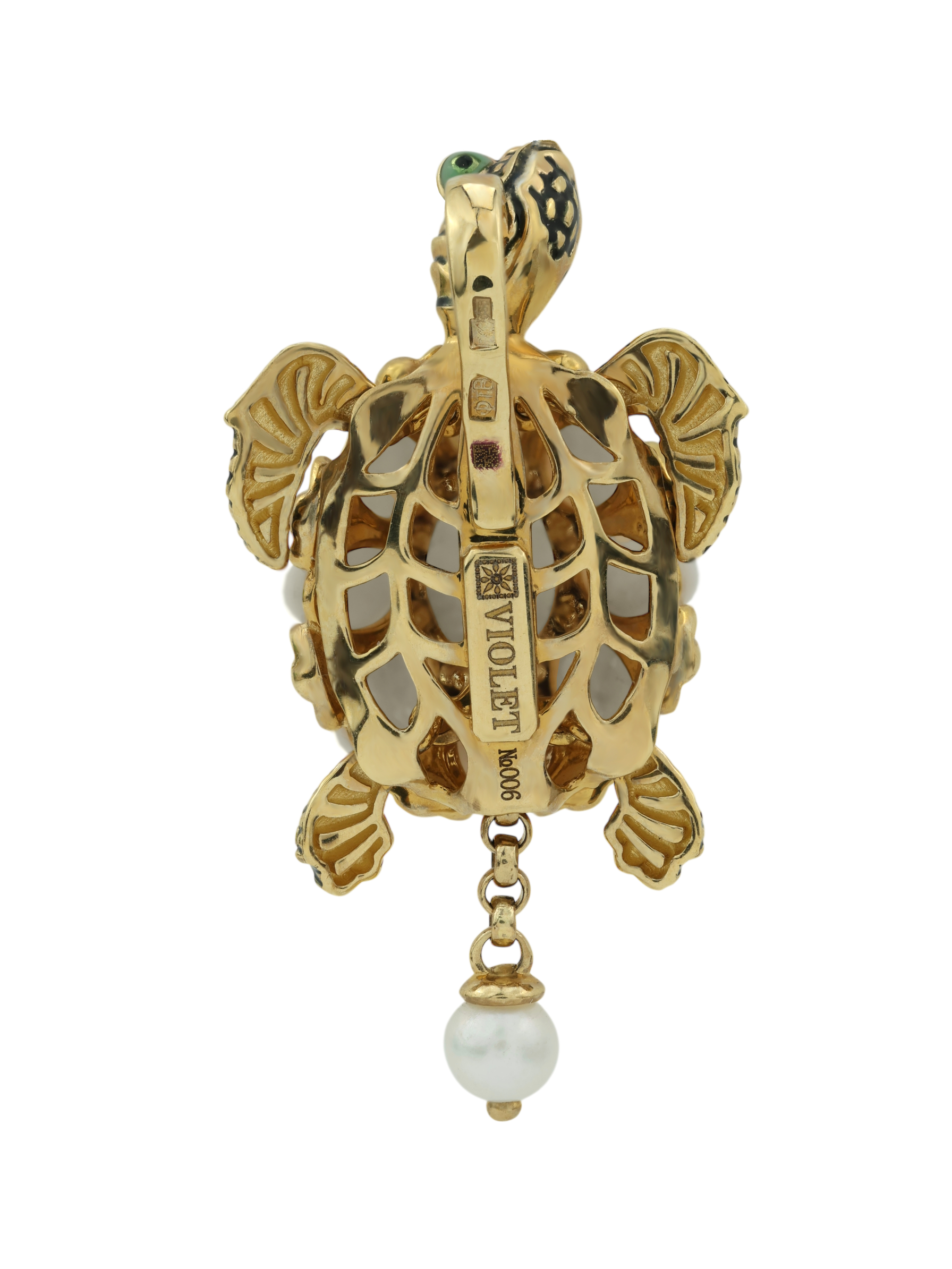 Подвеска из лимонного золота c эмаль , жемчугом и бивнем мамонта