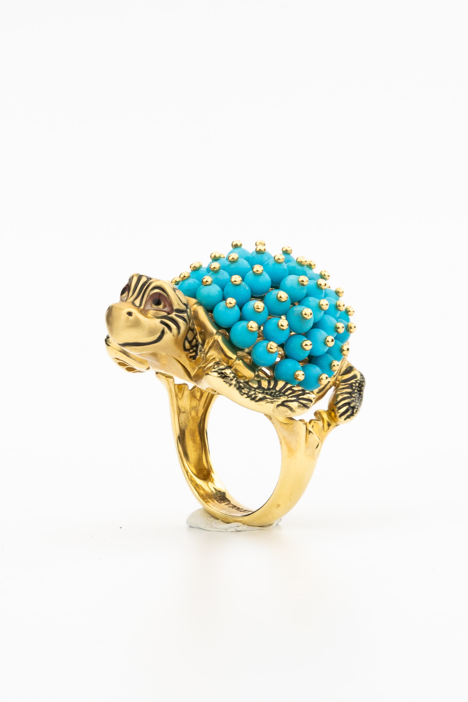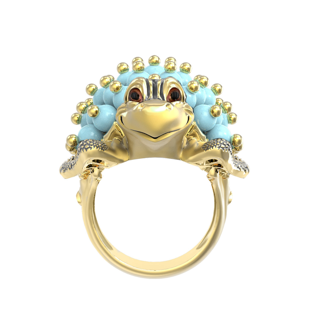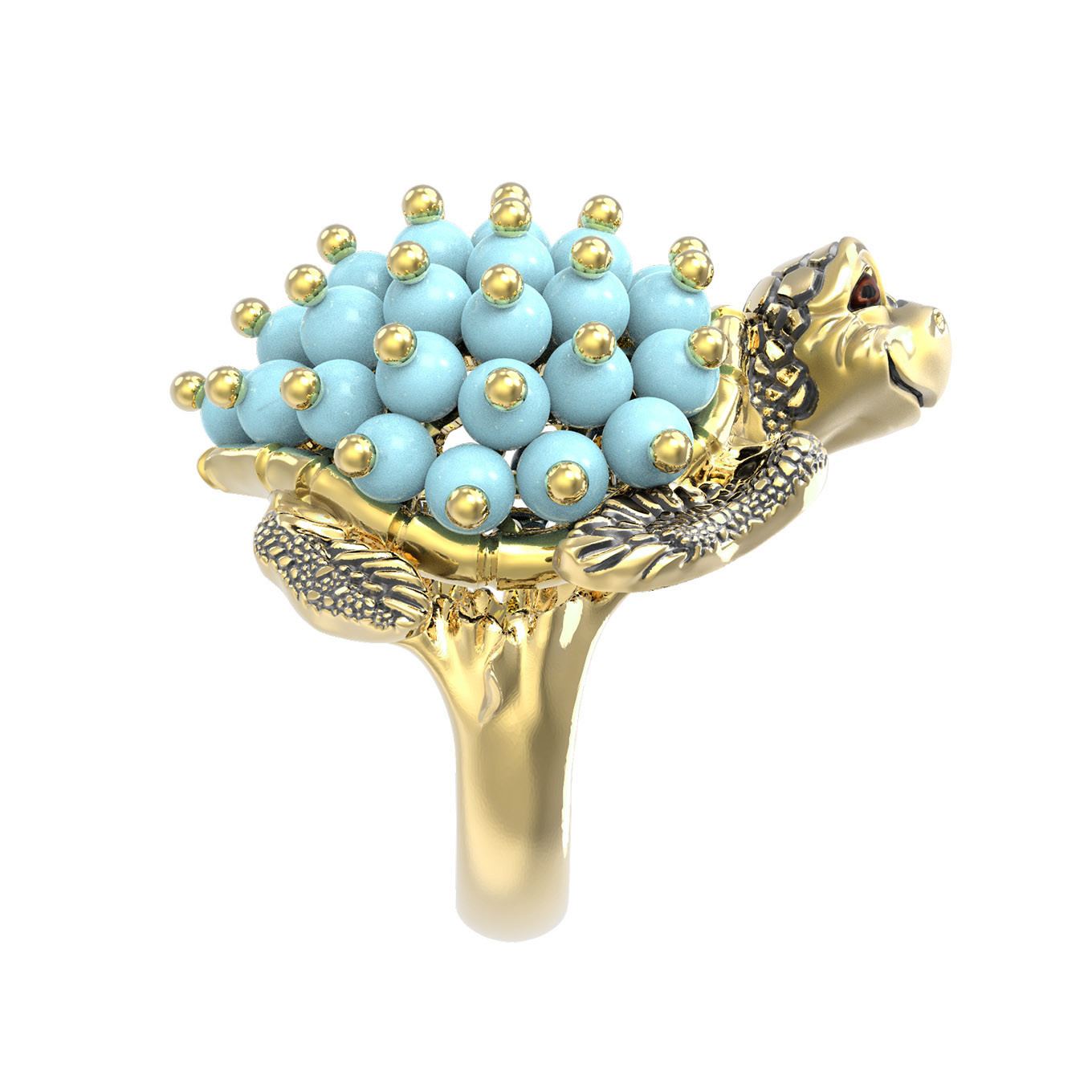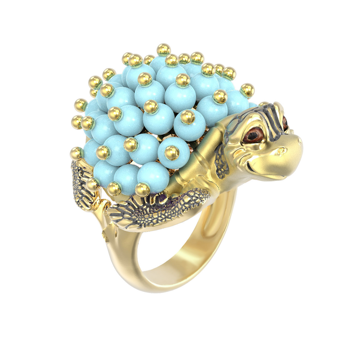 Кольцо из лимонного золота c эмаль и бирюзой