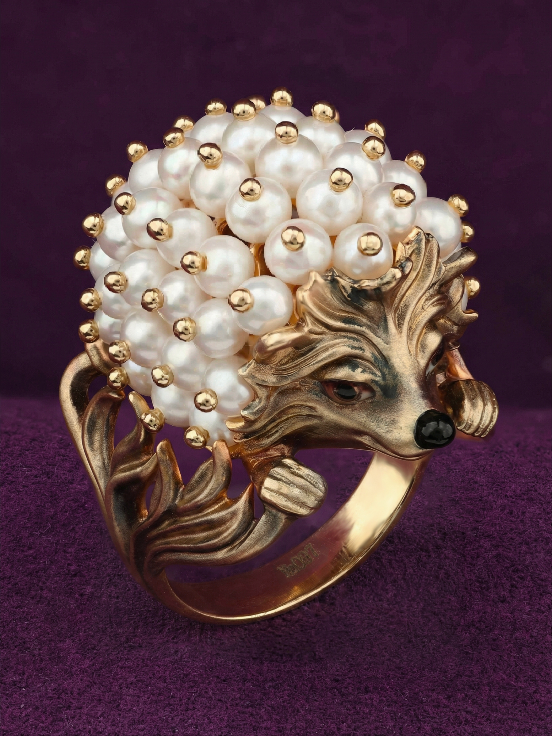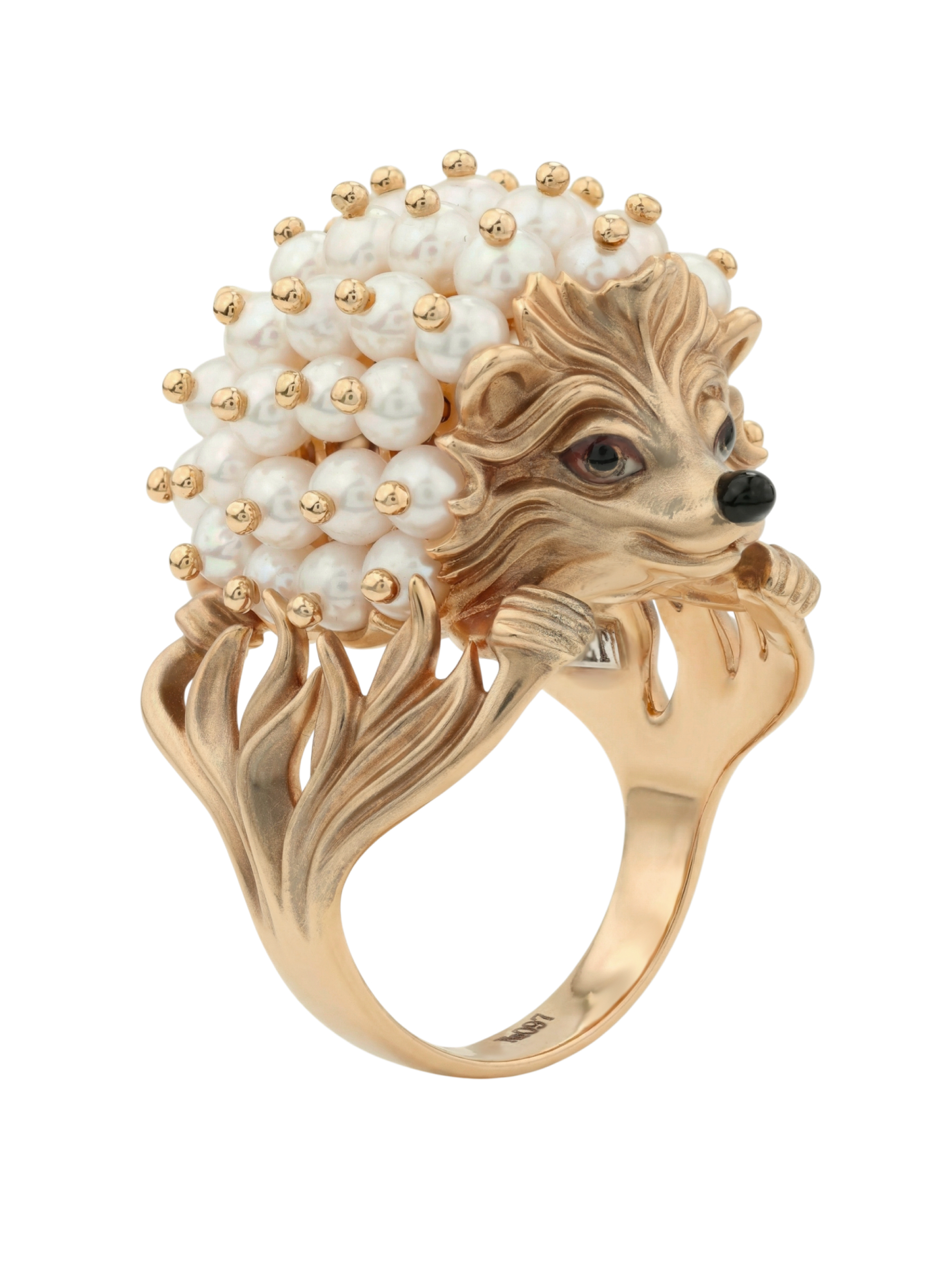 Кольцо из золота c эмаль и жемчугом