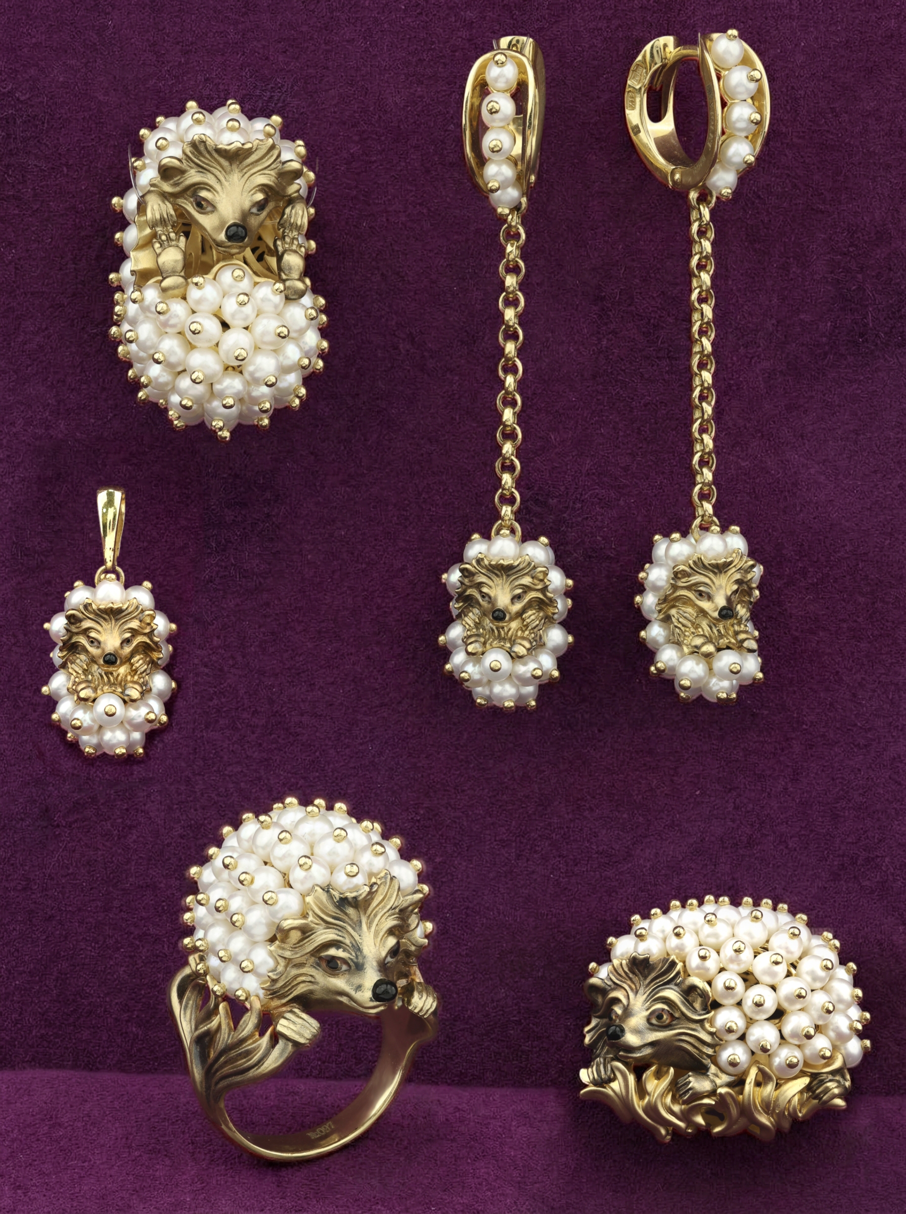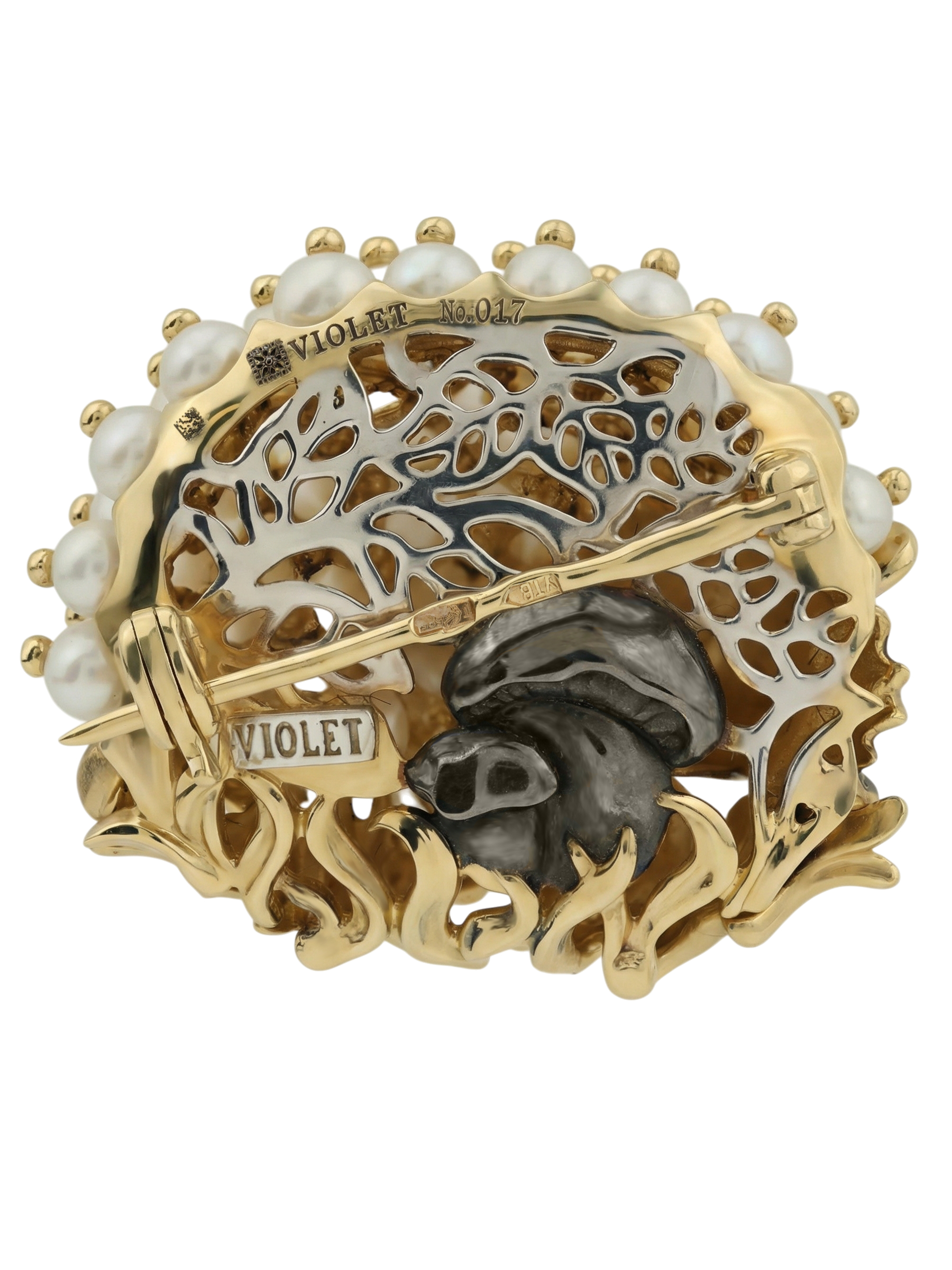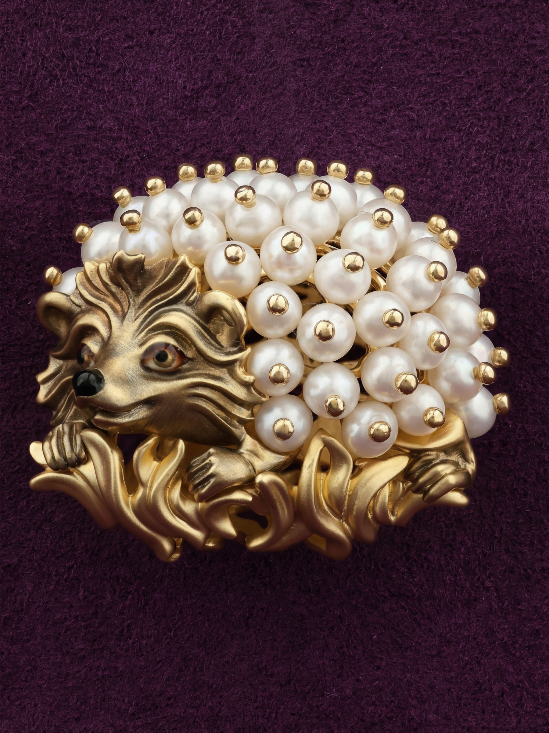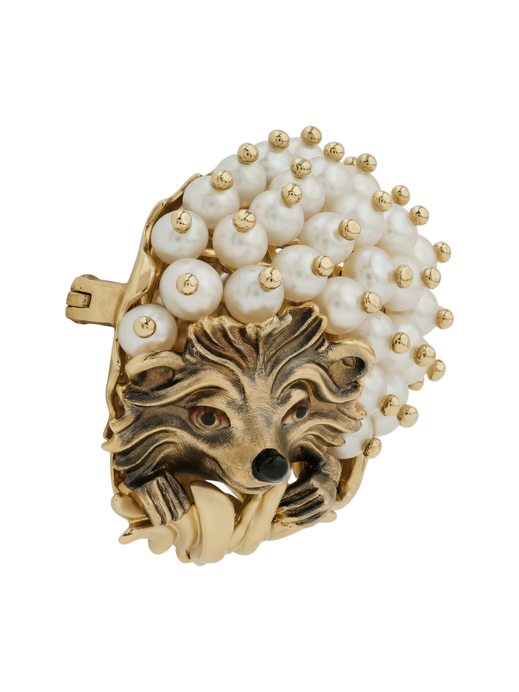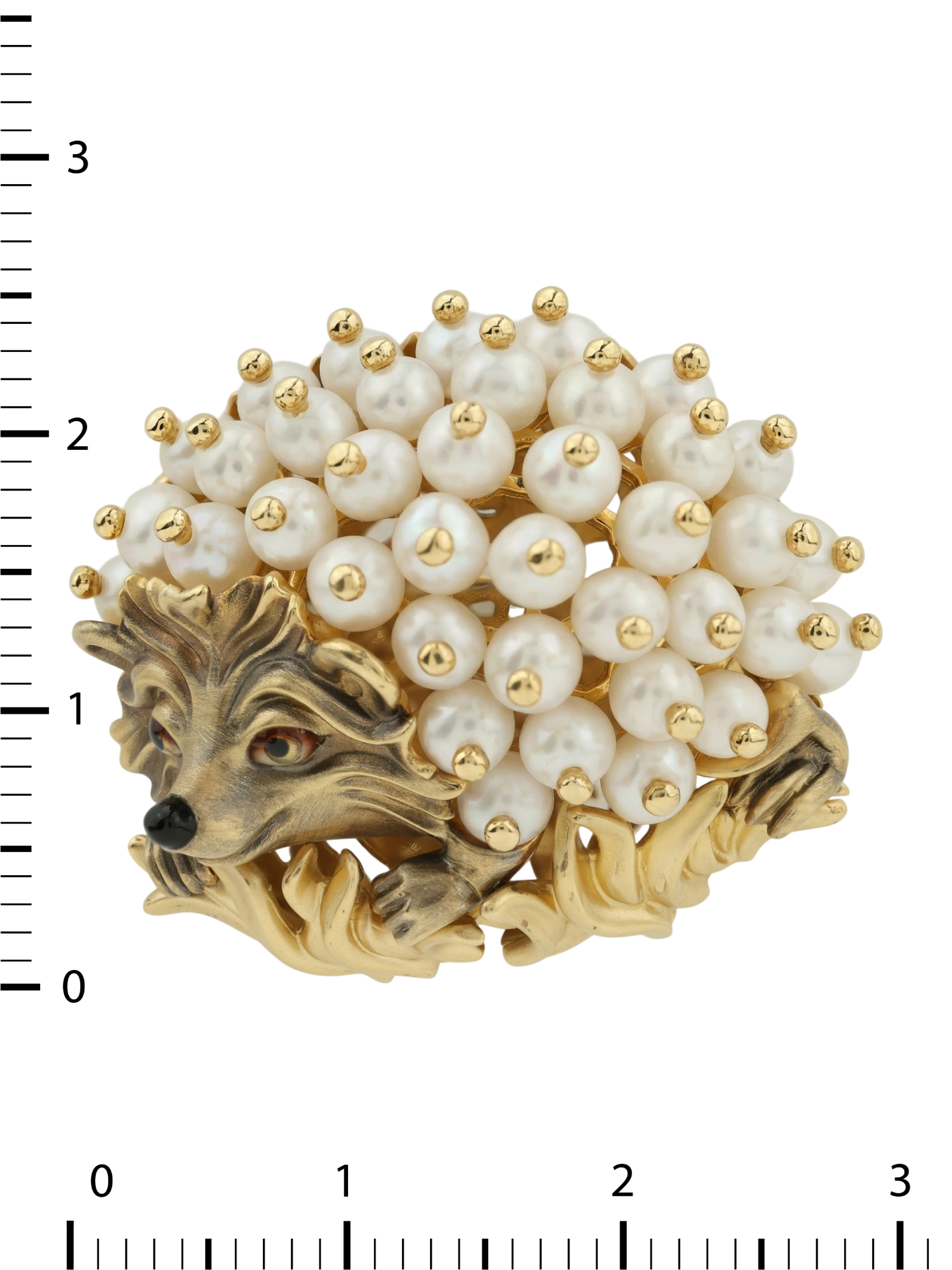 Брошь из лимонного золота c эмаль и жемчугом