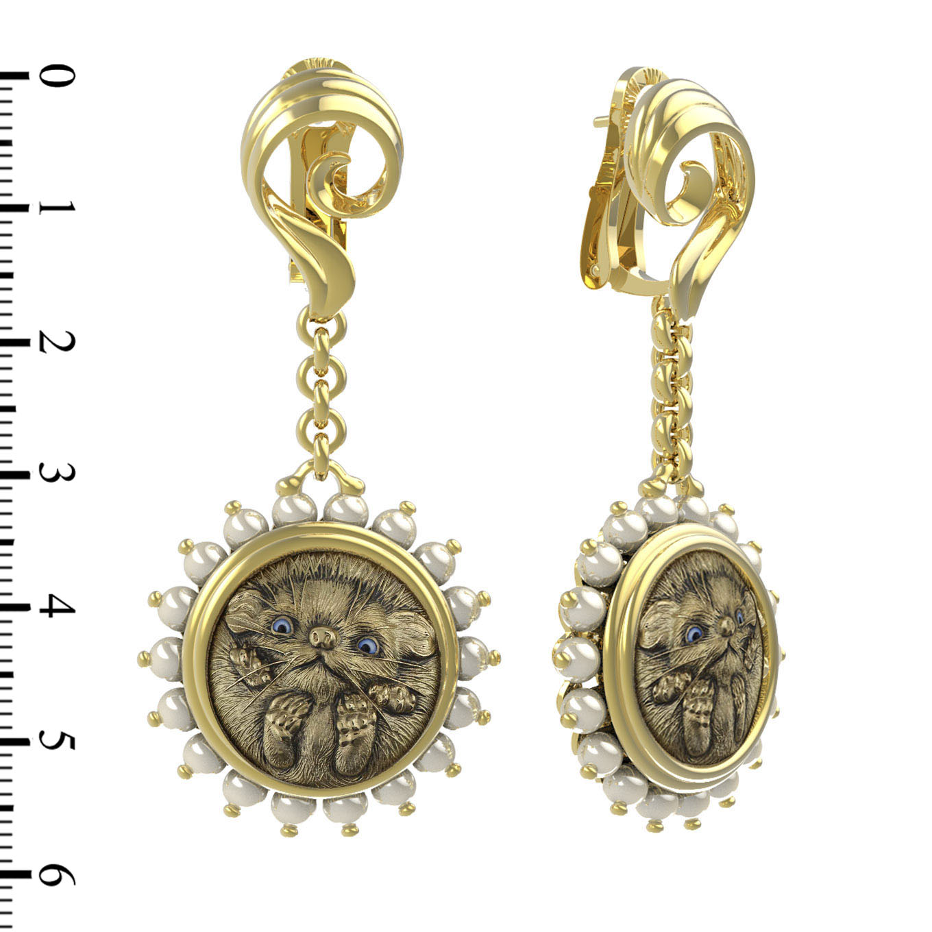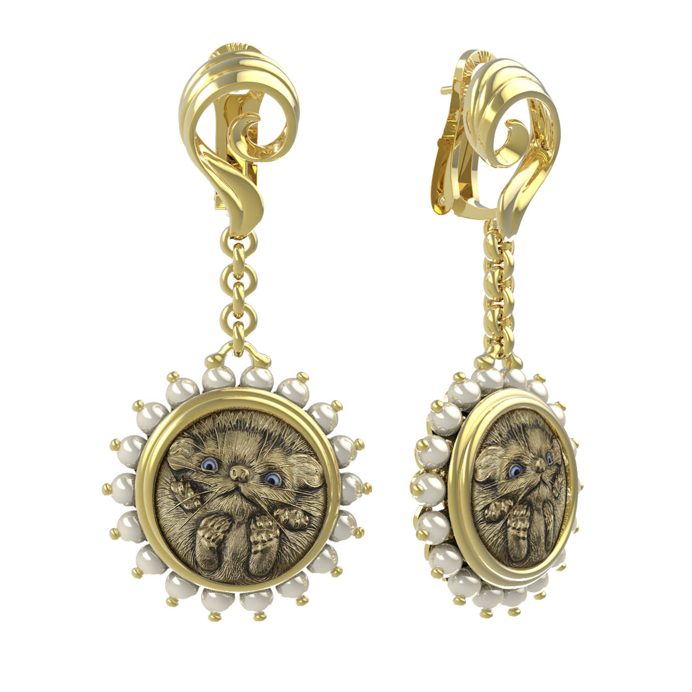 Серьги из лимонного золота c эмаль и жемчугом
