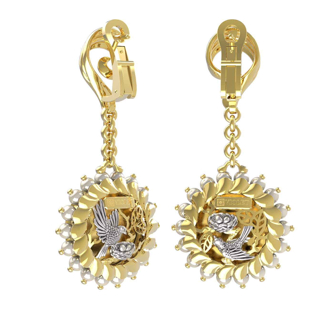 Серьги из лимонного золота c эмаль и жемчугом