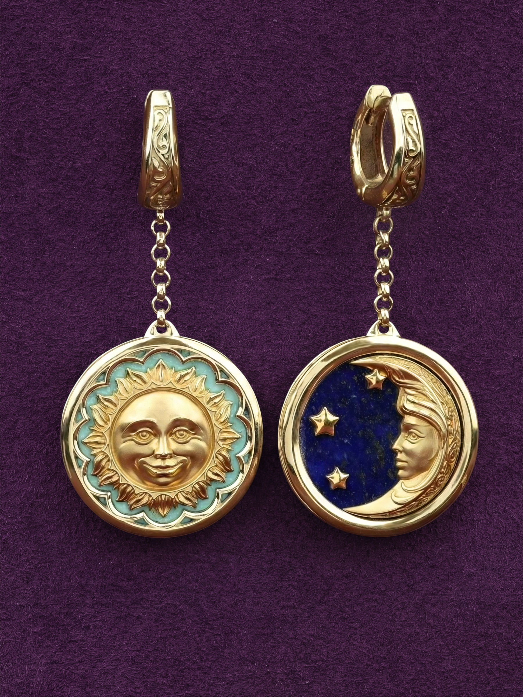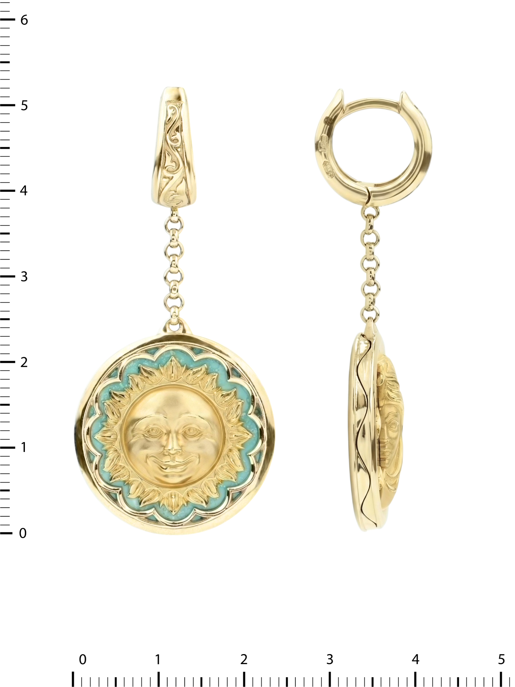 Серьги из лимонного золота c бирюзой и лазуритом