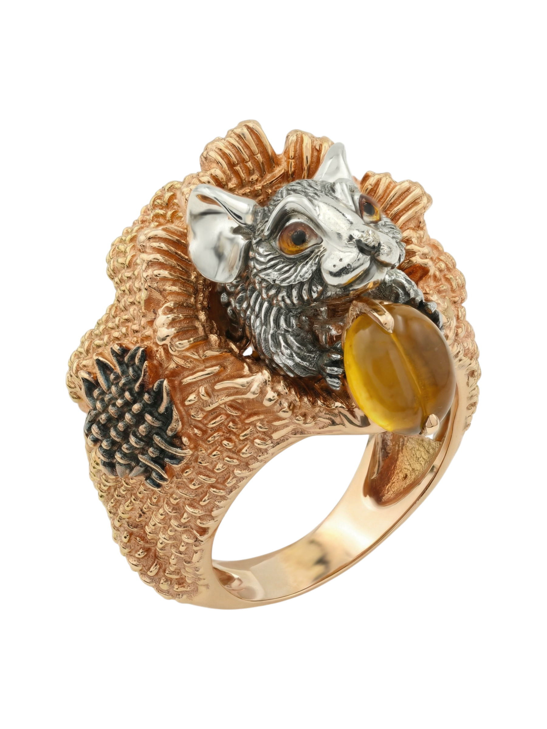 Кольцо из золота c эмаль и янтарём