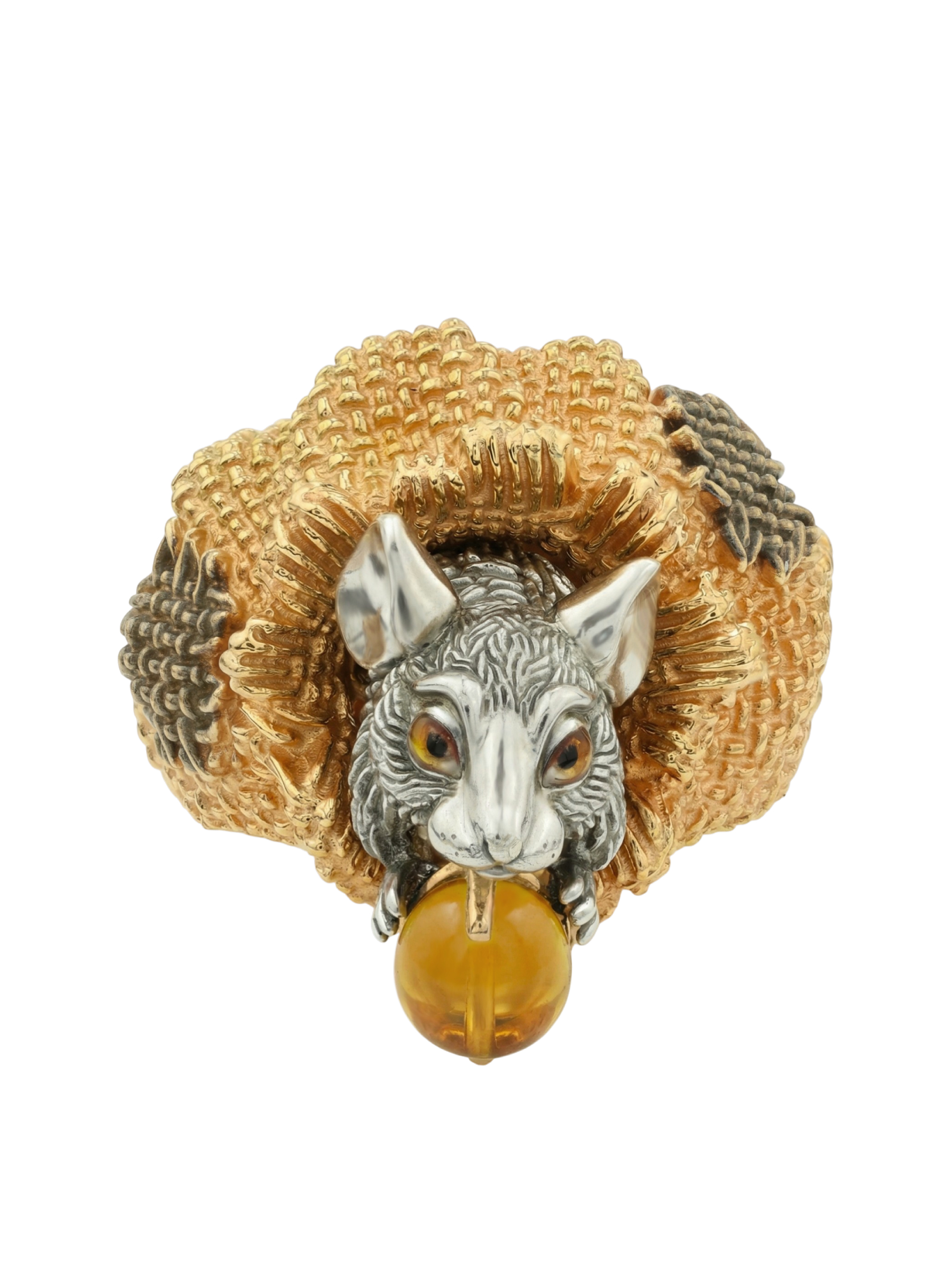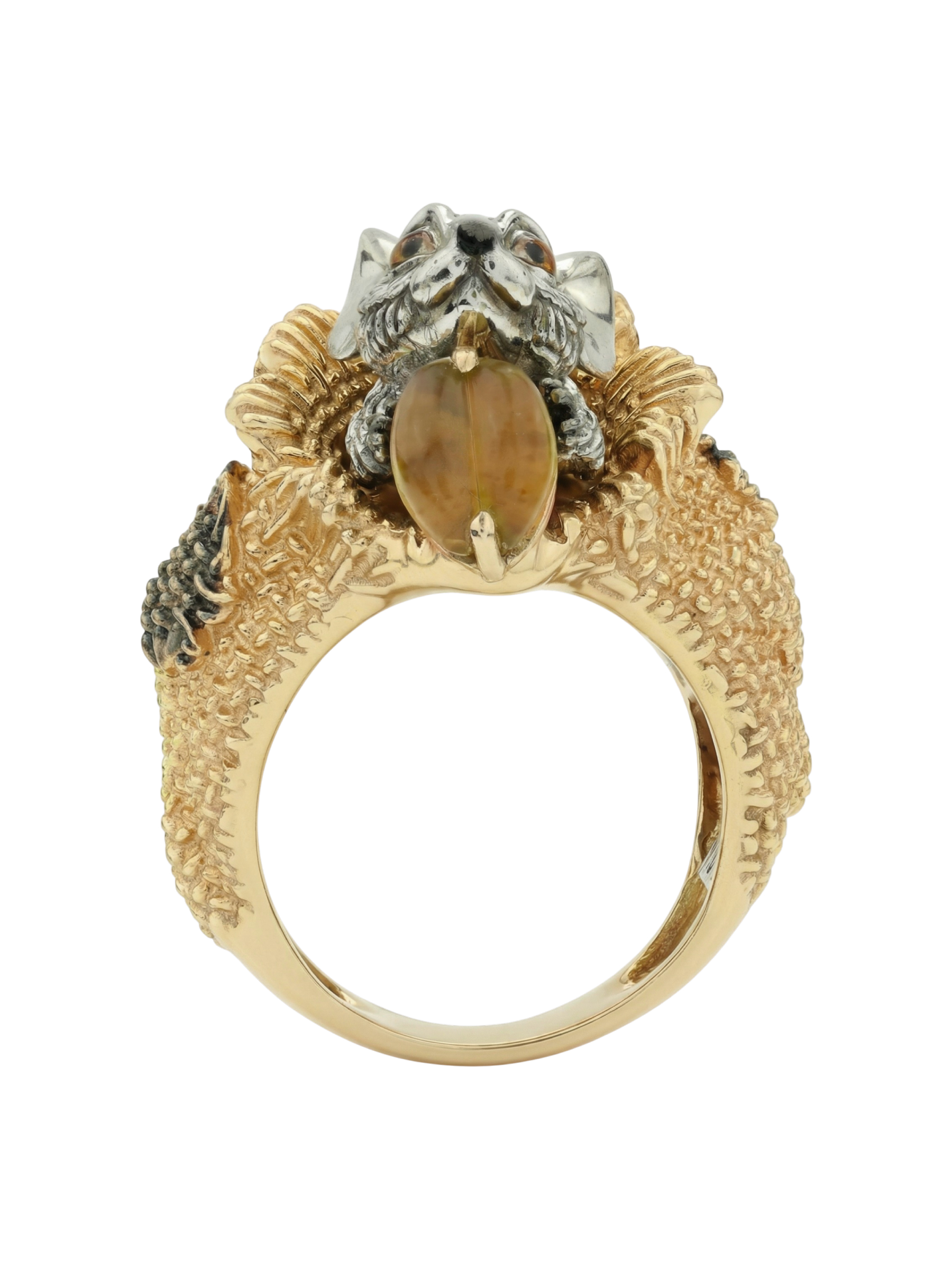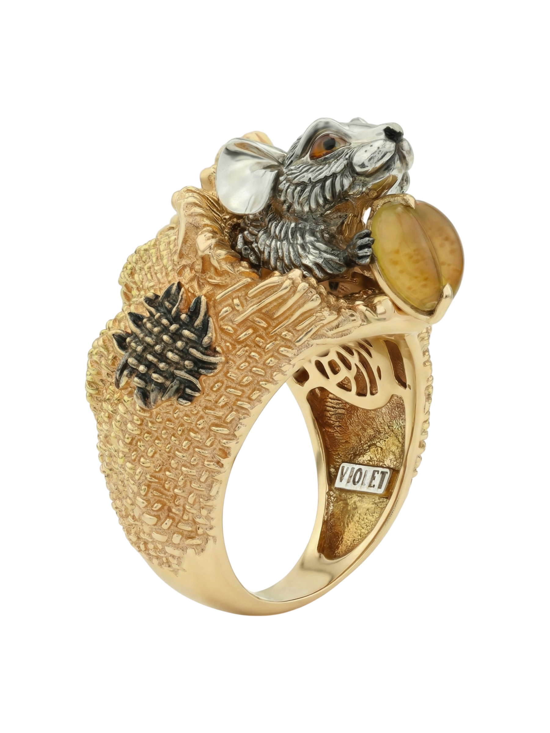 Кольцо из лимонного золота c эмаль и янтарём