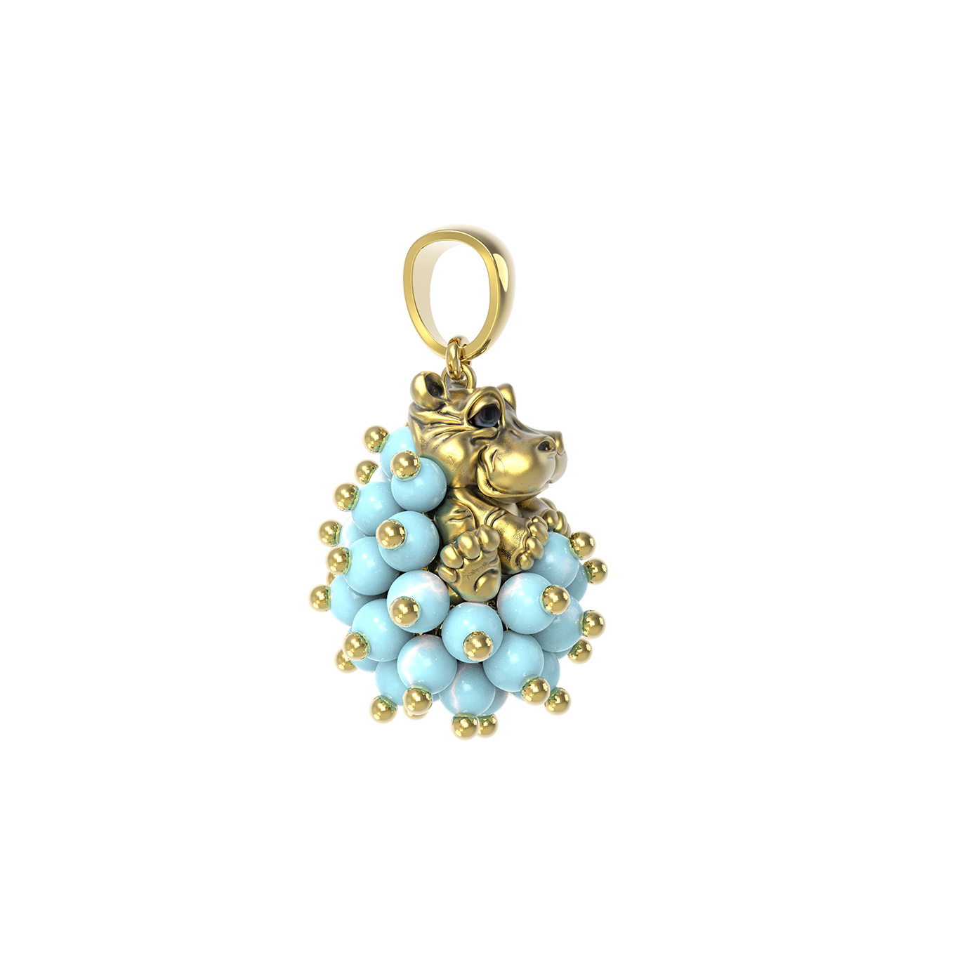 Подвеска из лимонного золота c эмаль и бирюзой