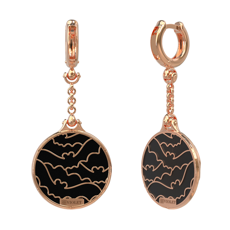 Серьги из золота c эмаль и ониксом