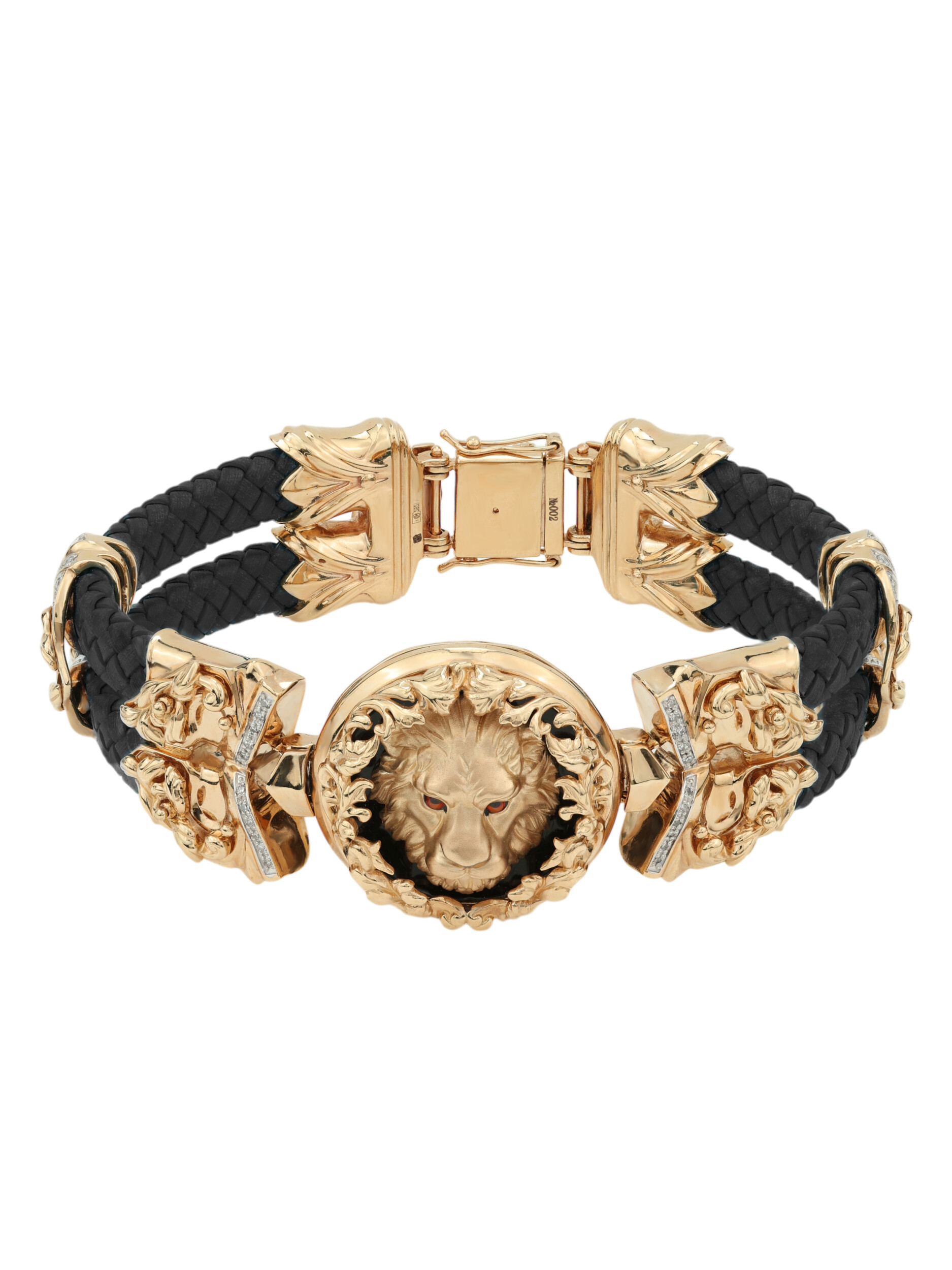Браслет из золота c эмаль, бриллиантами, шнурком и ониксом