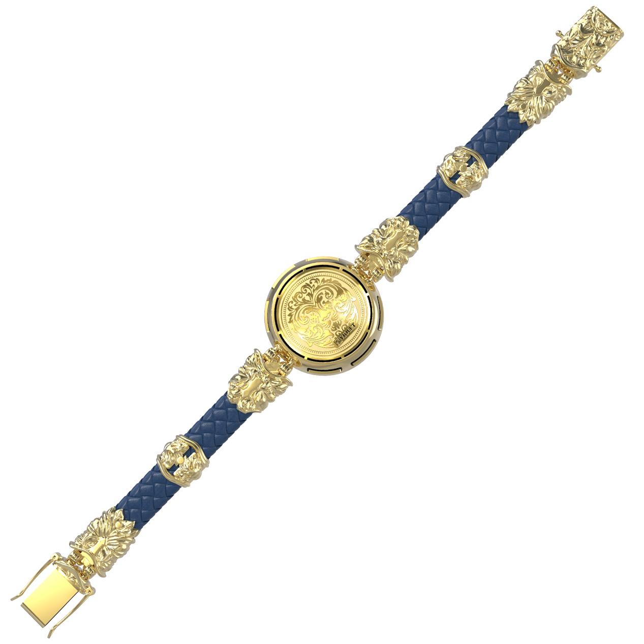 Браслет из лимонного золота c эмаль, кожаным шнурком и ониксом
