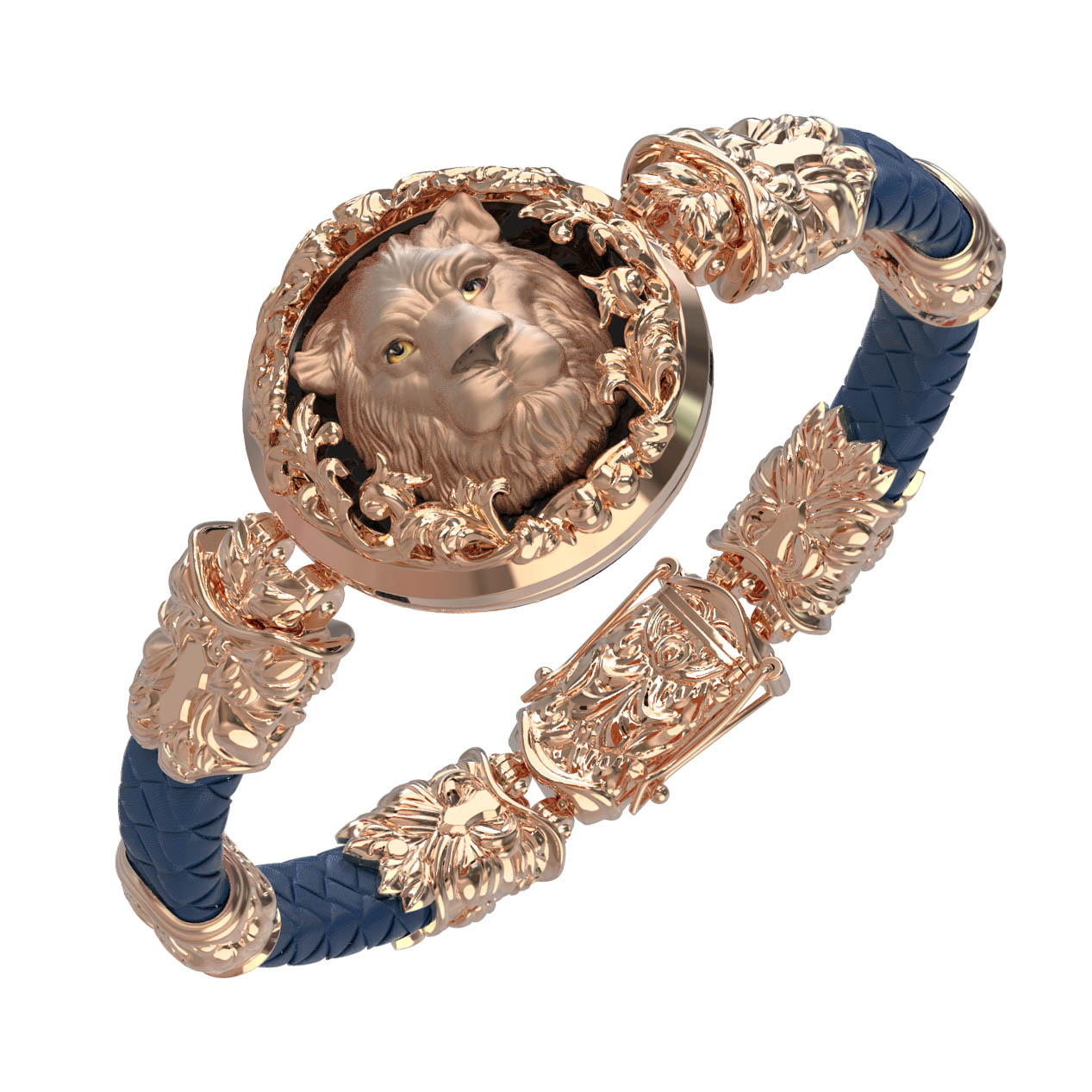 Браслет из золота c кожаным шнурком и ониксом