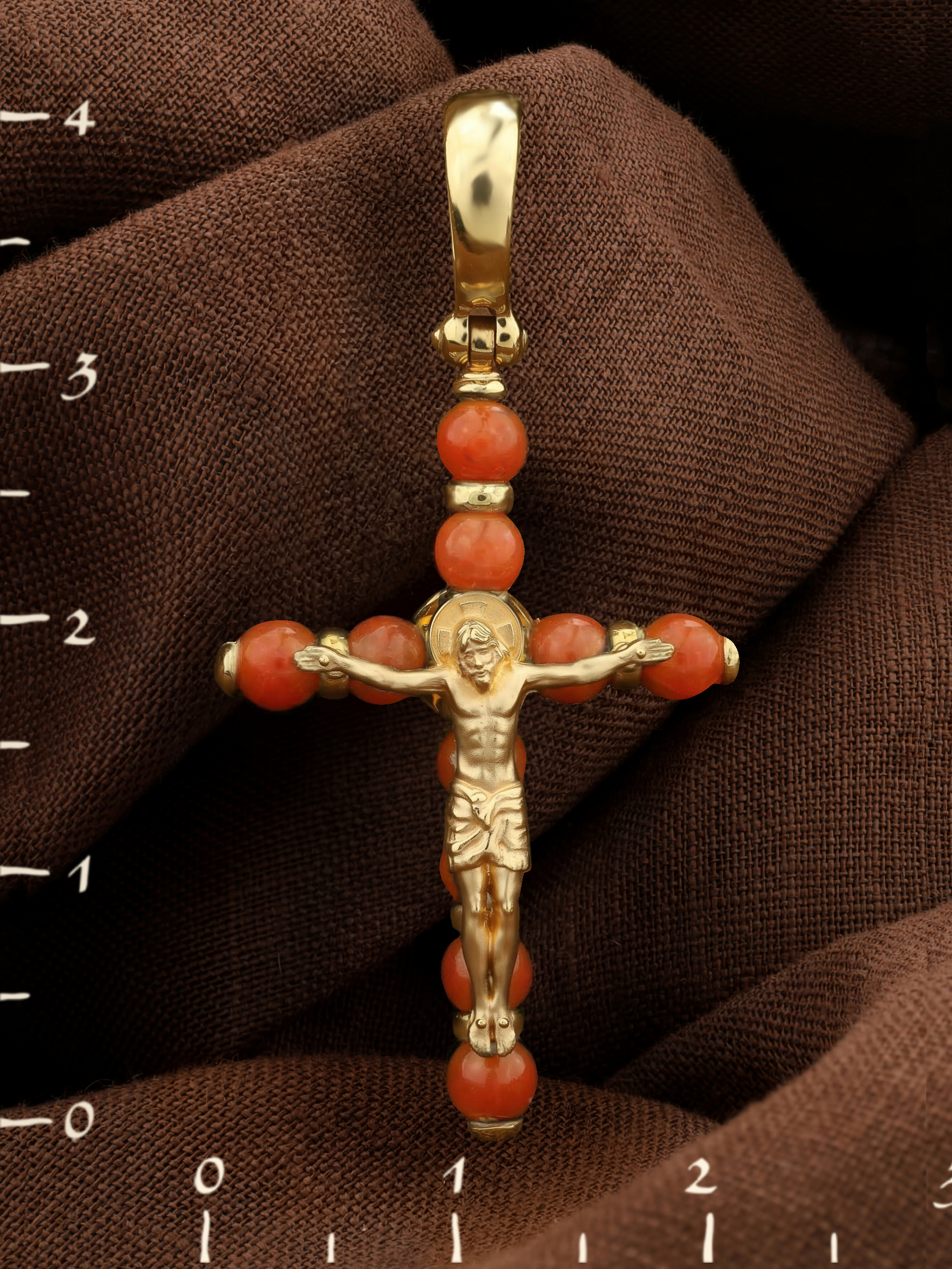Крест из лимонного золота c кораллом