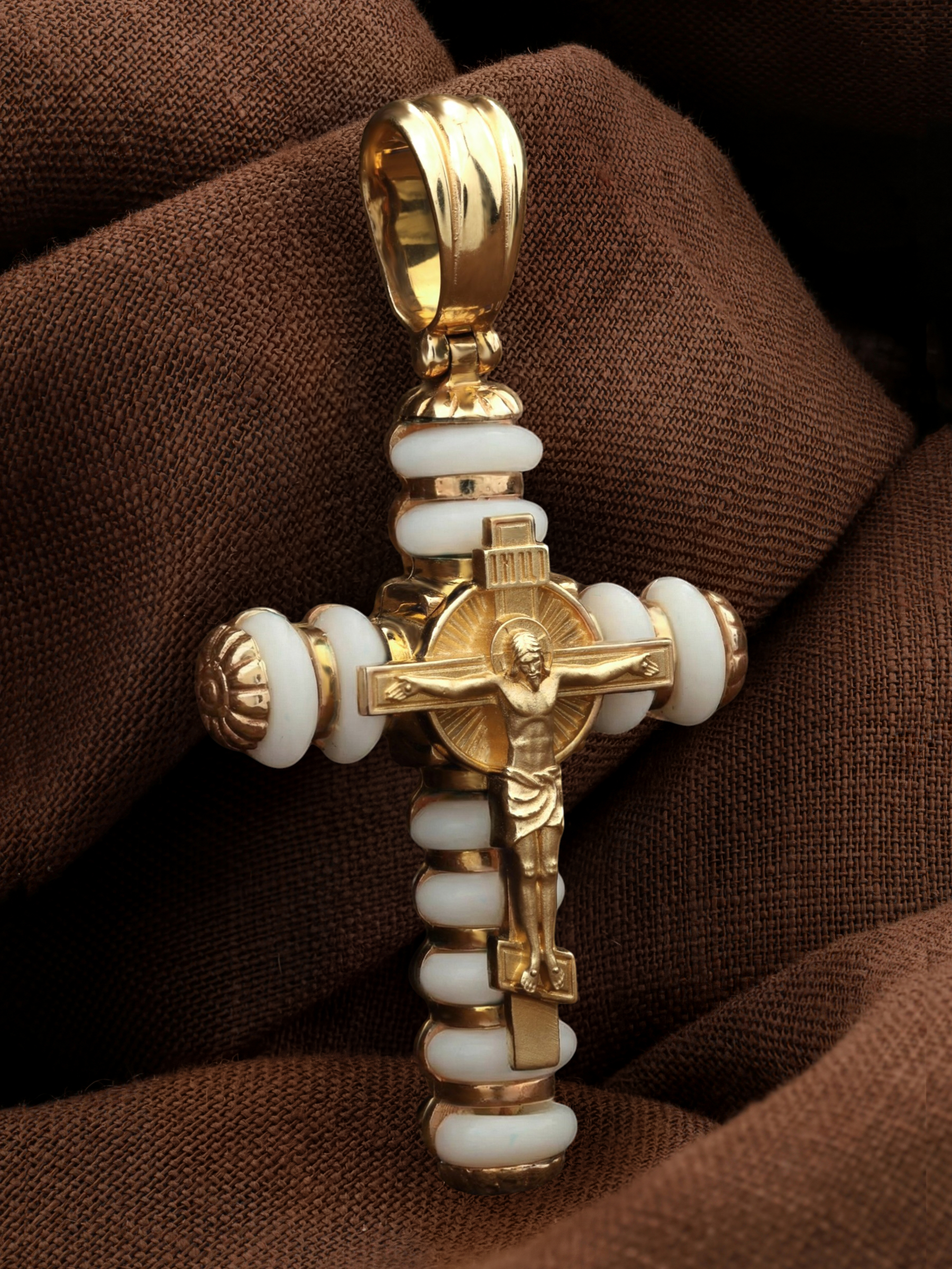 Крест из лимонного золота c кахолонгом
