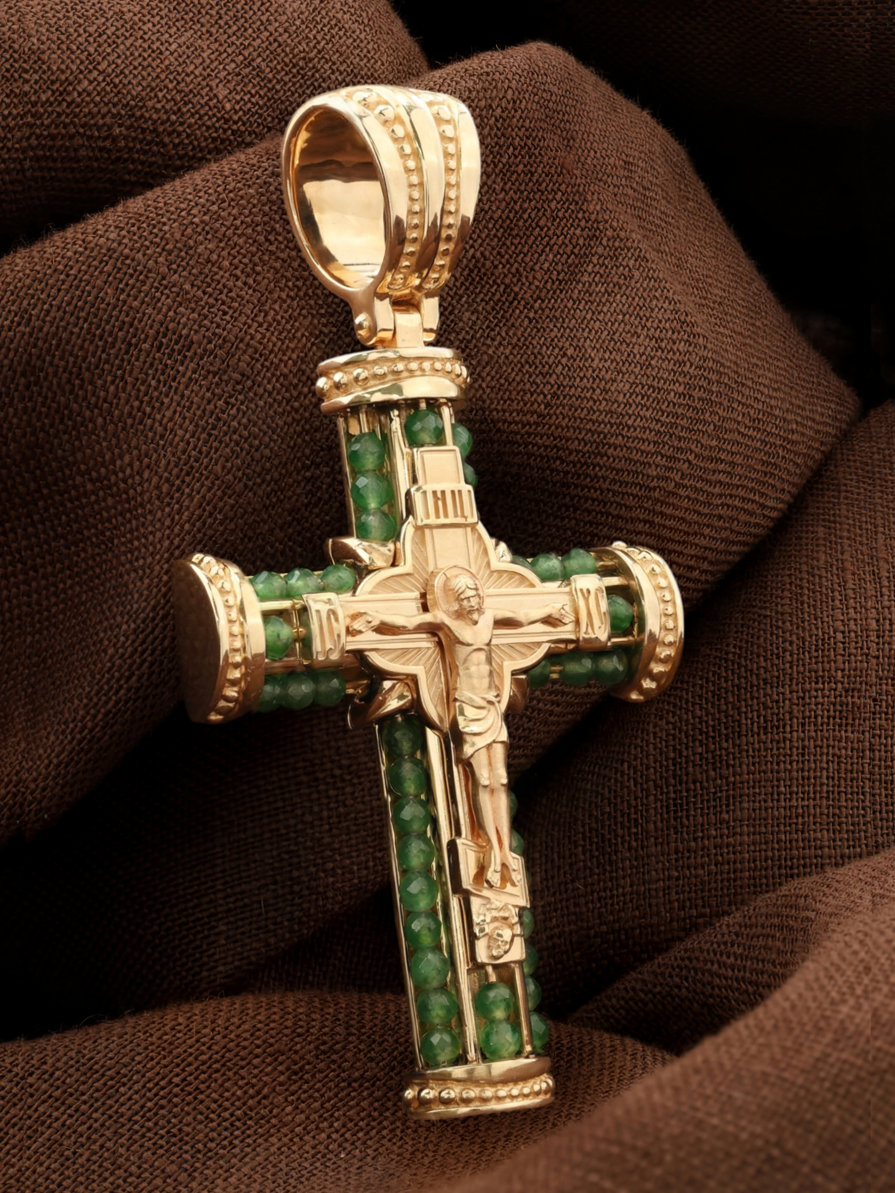 Крест из золота c хризопразом