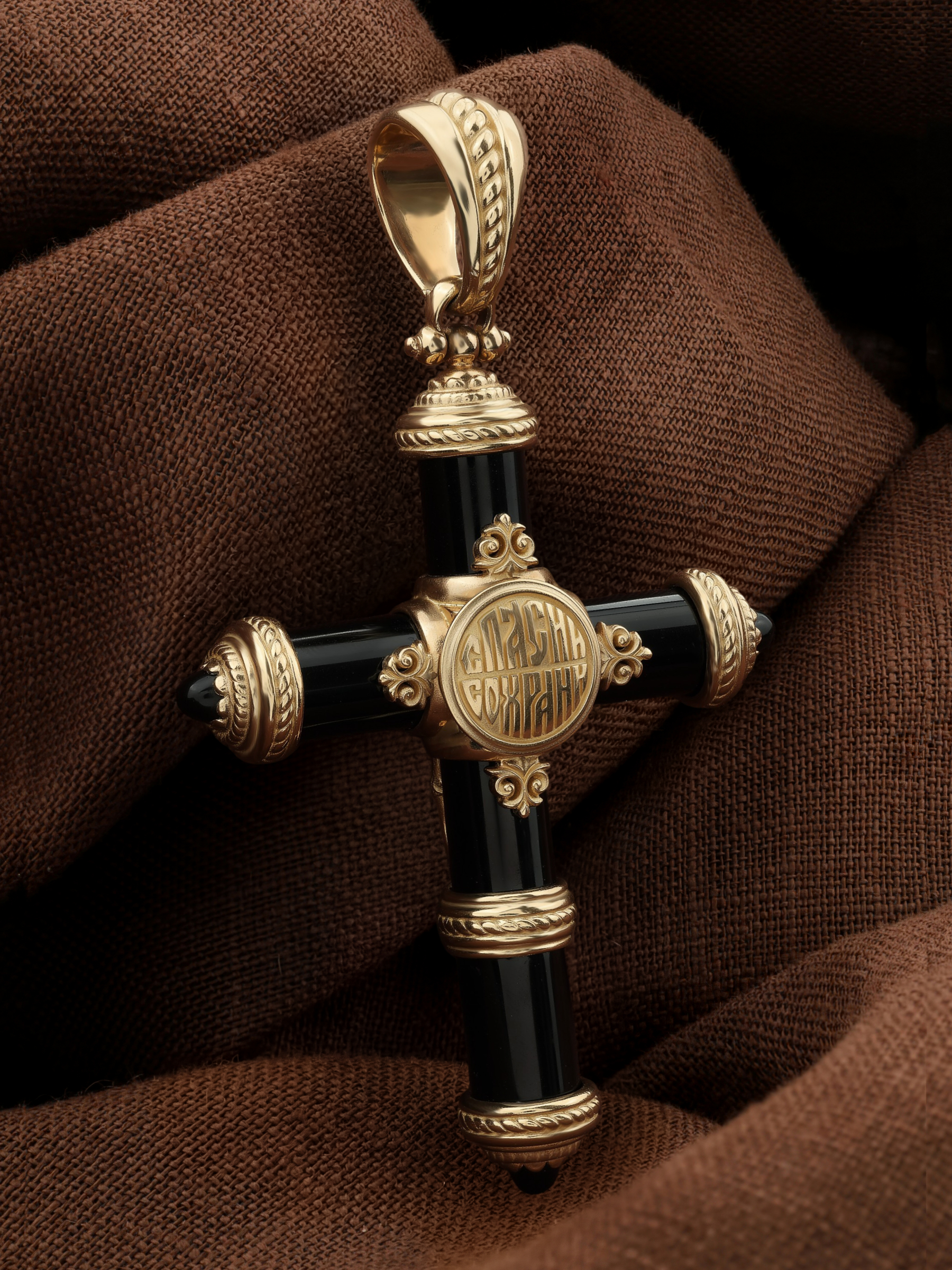 В центрально части оборотной стороны креста написана молитва: «Спаси и сохрани».