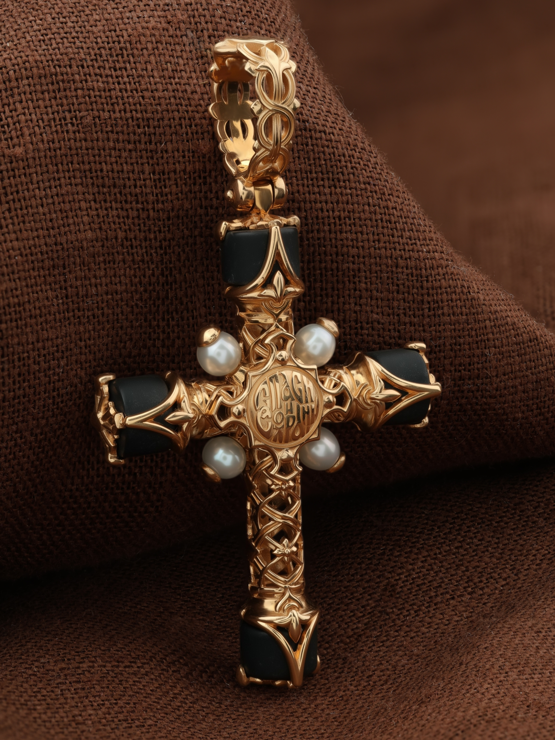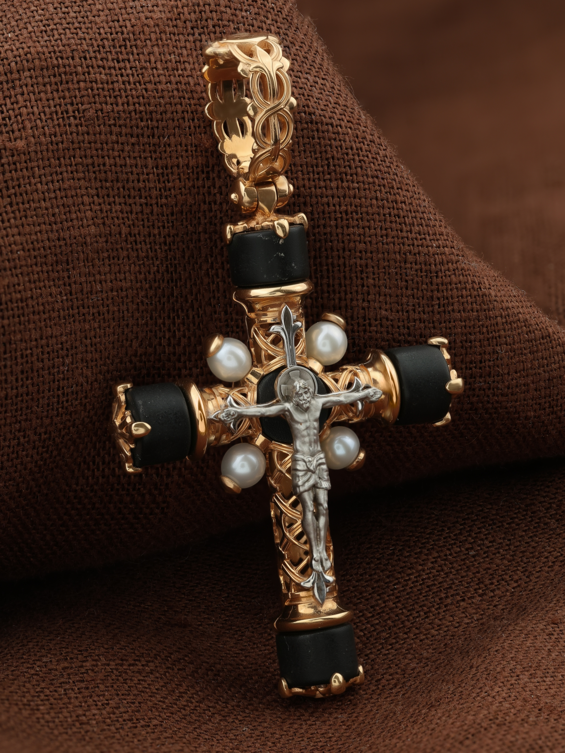 Крест из золота c жемчугом и ониксом