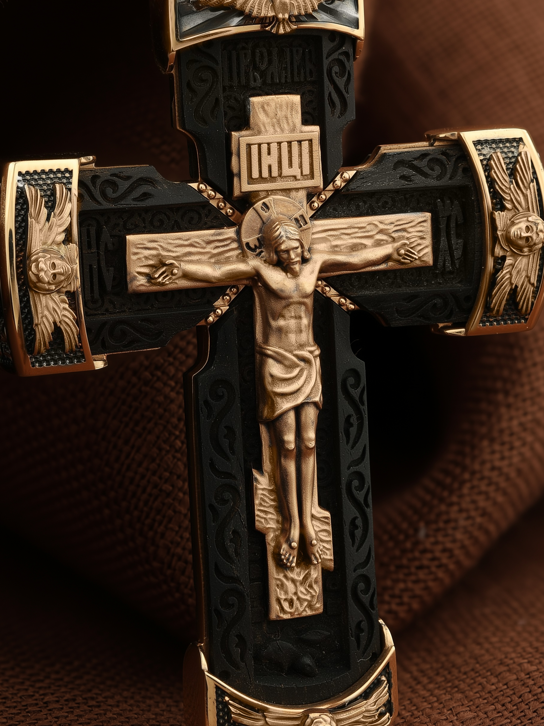 Крест из золота c эбеновым деревом