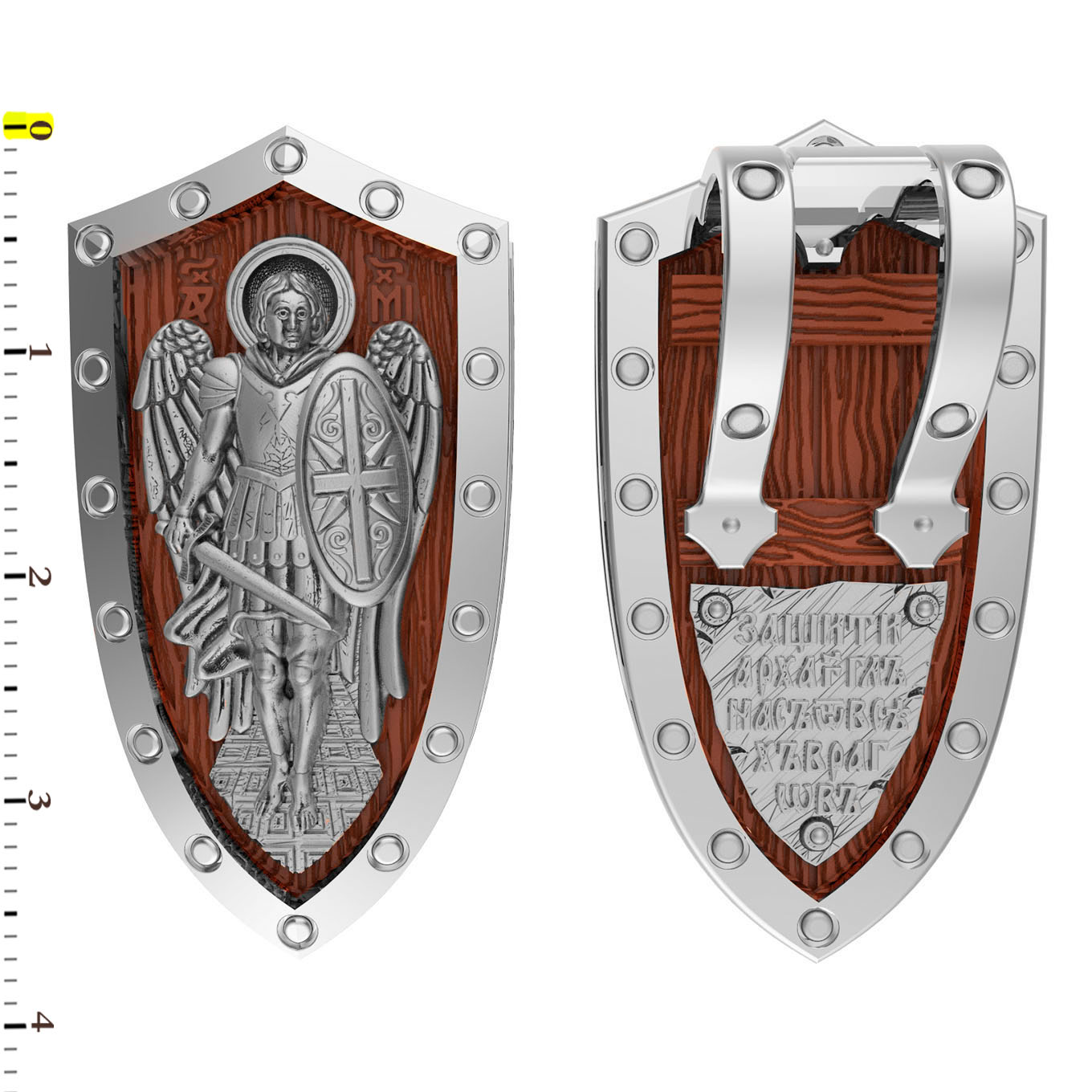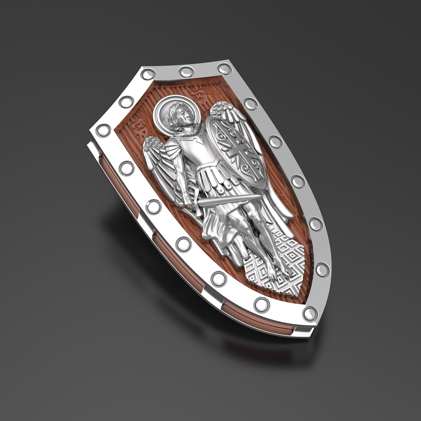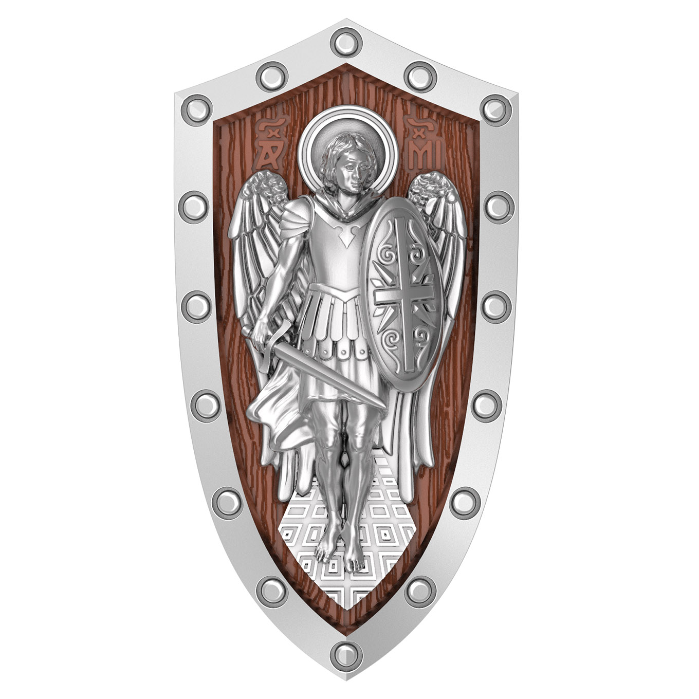 На лицевой стороне образка изображение Архангела Михаила — верного служителя Божия, который низринул с Неба возгордившегося денницу с другими павшими духами. В Православии его называют Архистратигом, что означает глава святого воинства Ангелов и Архангелов. Образок сделан в виде воинского щита. Архангел Михаил изображен в воинственном виде с огненным мечом в правой руке и щитом в левой. Архангел почитается как покровитель воинов и всех верных Богу и ведущих борьбу против сил зла, борец против ересей, а также защитник душ умерших, страж райских врат. С древних времен прославлен своими чудесами Архангел Михаил на Руси. Примеров явления и помощи Архистратига Михаила в русской истории бессчетно. Архангел Михаил не перестает ратоборствовать за славу Творца и Господа всяческих, за дело спасения рода человеческого, за церковь и чад ее. И, согласно, Откровению Иоанна Богослова во время последней битвы небесных и дьявольских сил Михаил и его ангелы опять низвергнут Люцифера вместе с его войском: «Михаил и Ангелы его воевали против дракона, и дракон и ангелы его воевали [против них], но не устояли, и не нашлось уже для них места на небе. И низвержен был великий дракон, древний змий, называемый диаволом и сатаною, обольщающий всю вселенную, низвержен на землю, и ангелы его низвержены с ним» (Откр.12:7−9).