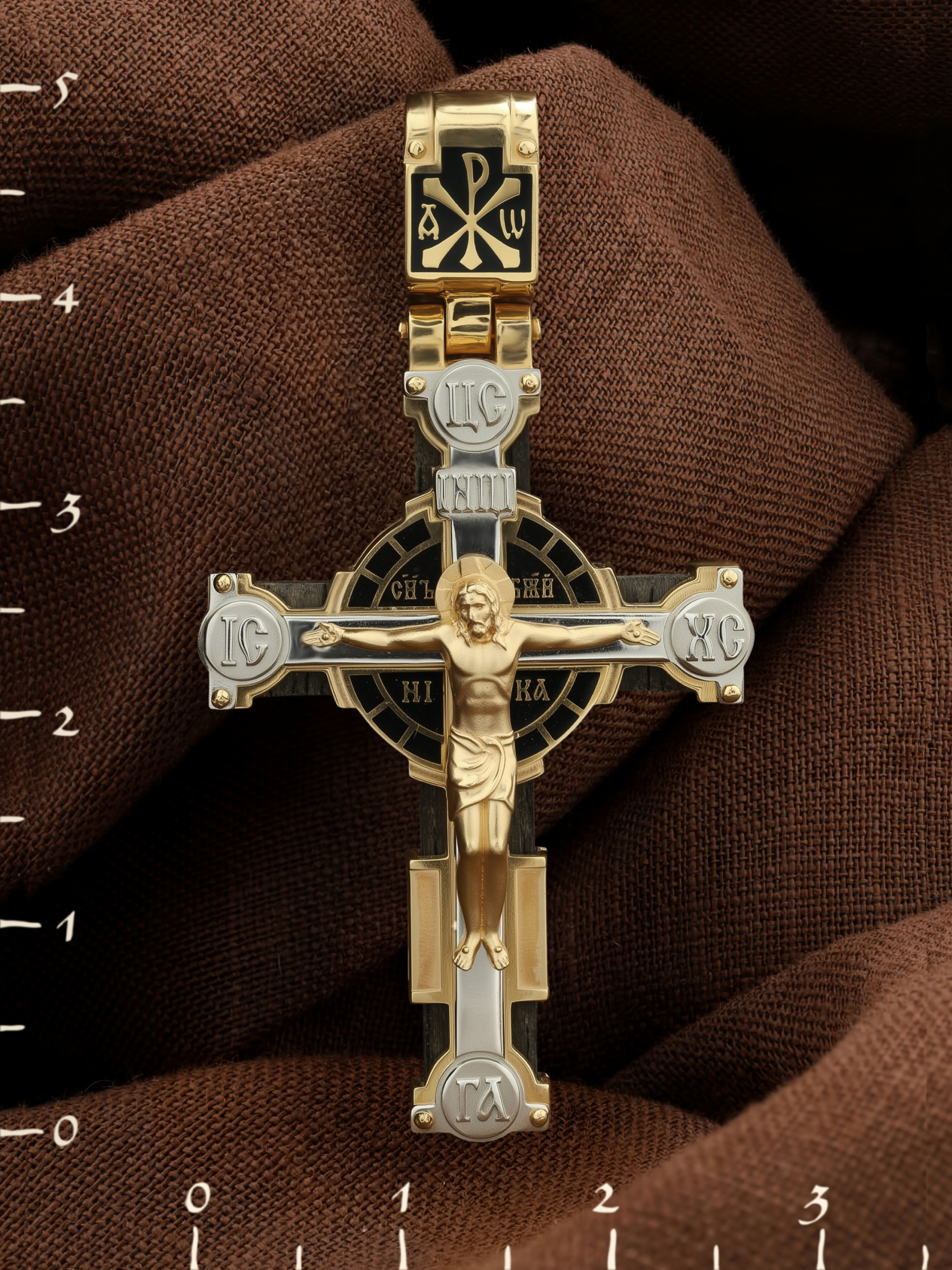 Крест из лимонного золота c эмаль и эбеновым деревом