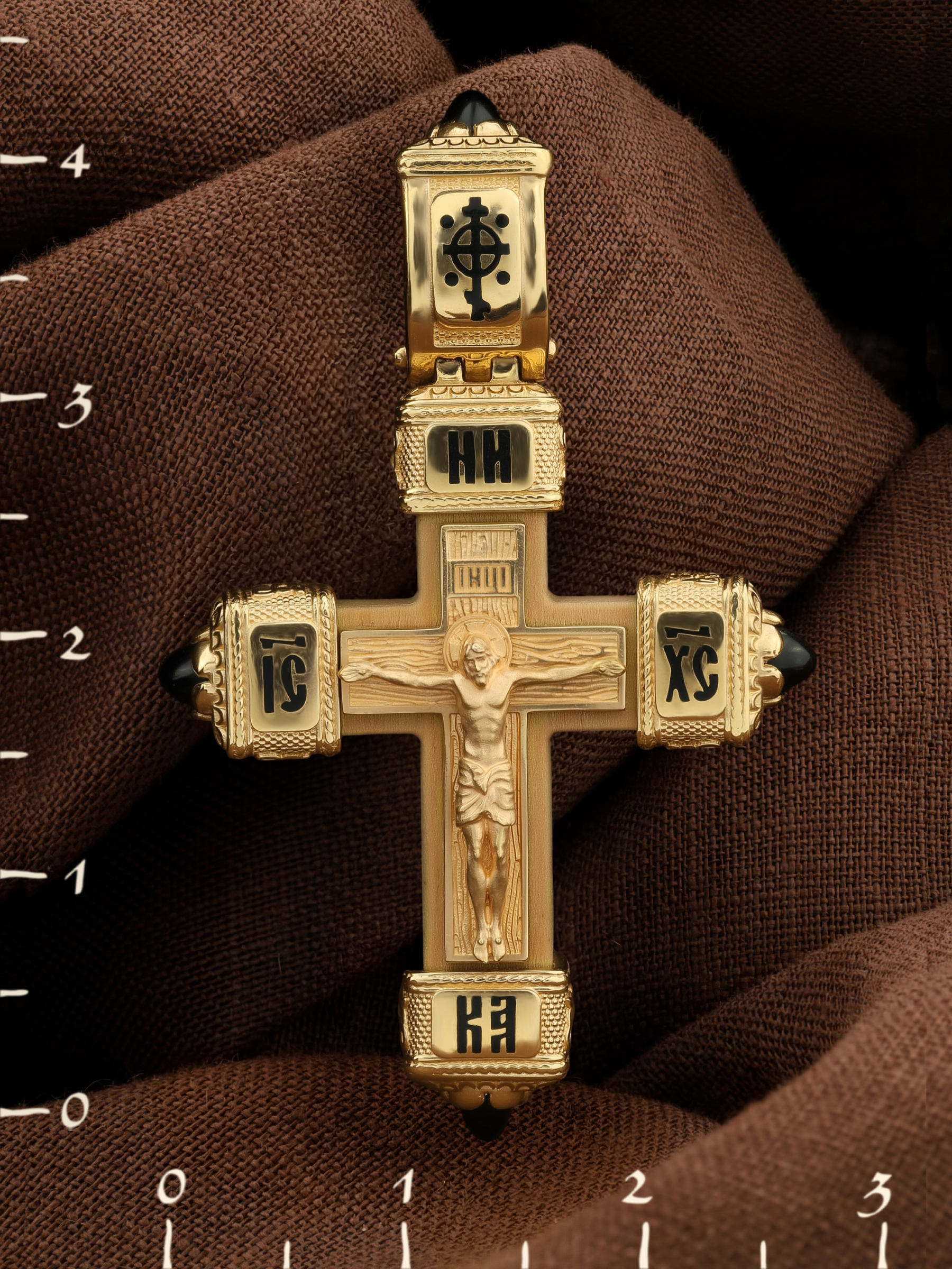 Крест из лимонного золота c эмаль, ониксом и деревом груши