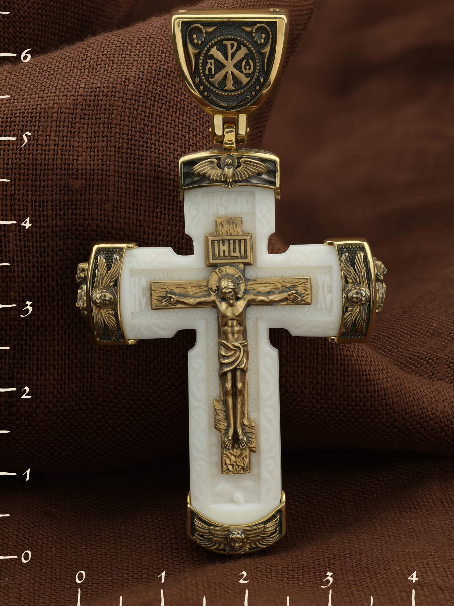 Крест из лимонного золота c бивнем мамонта