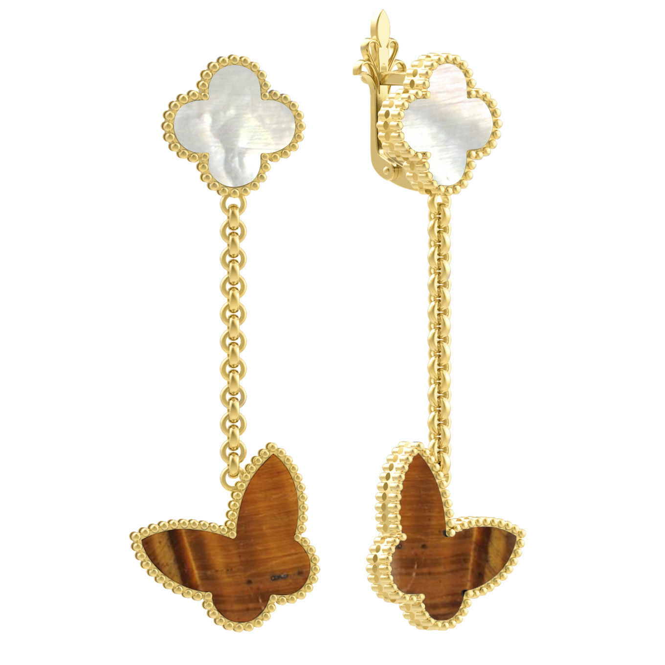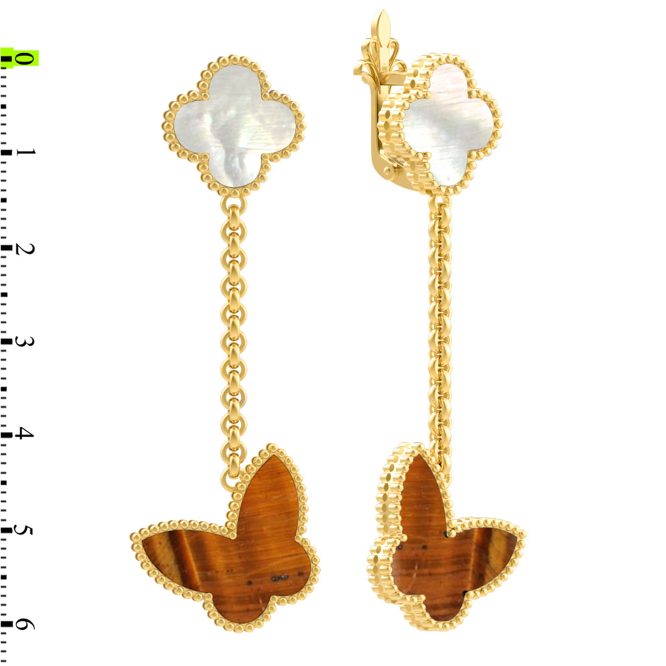 Серьги из лимонного золота c тигровым глазом и перламутром
