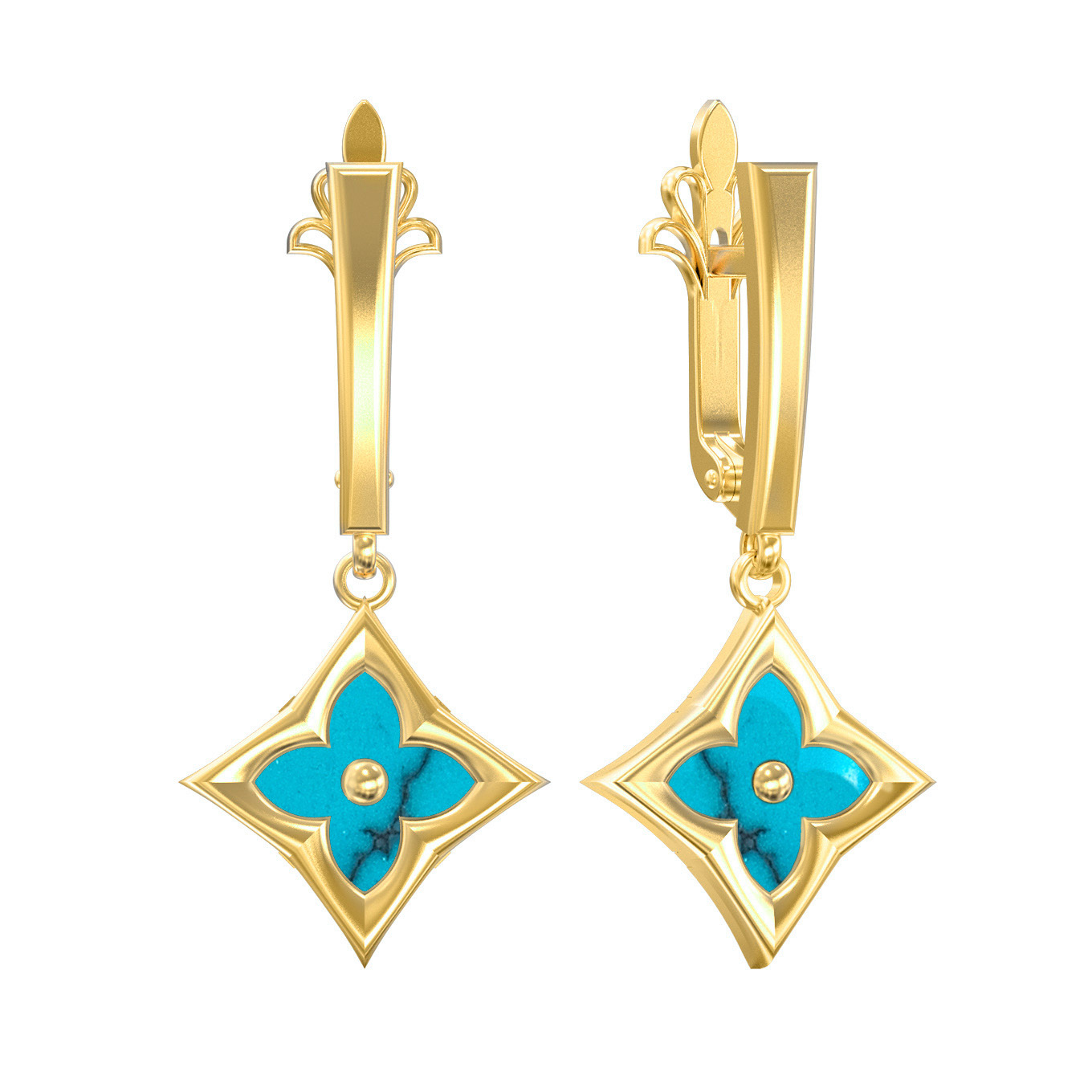 Серьги из лимонного золота c бирюзой