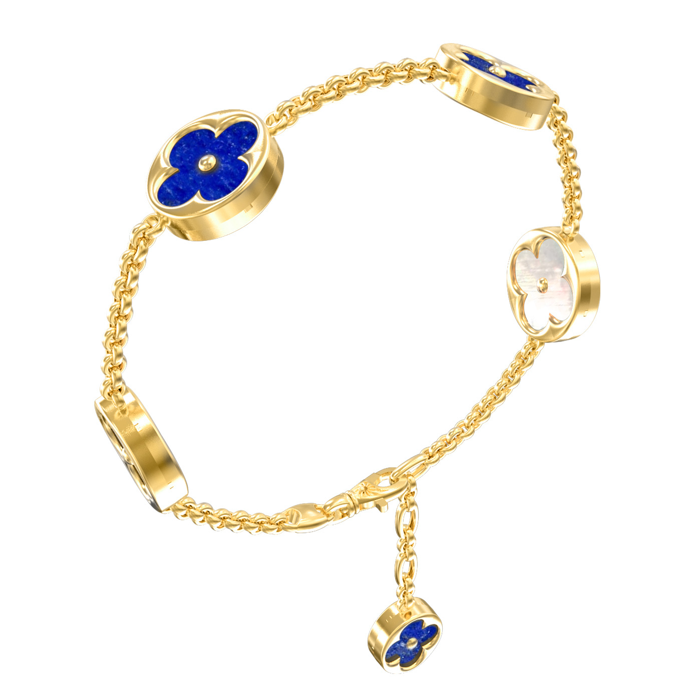 Браслет из лимонного золота c лазуритом и перламутром